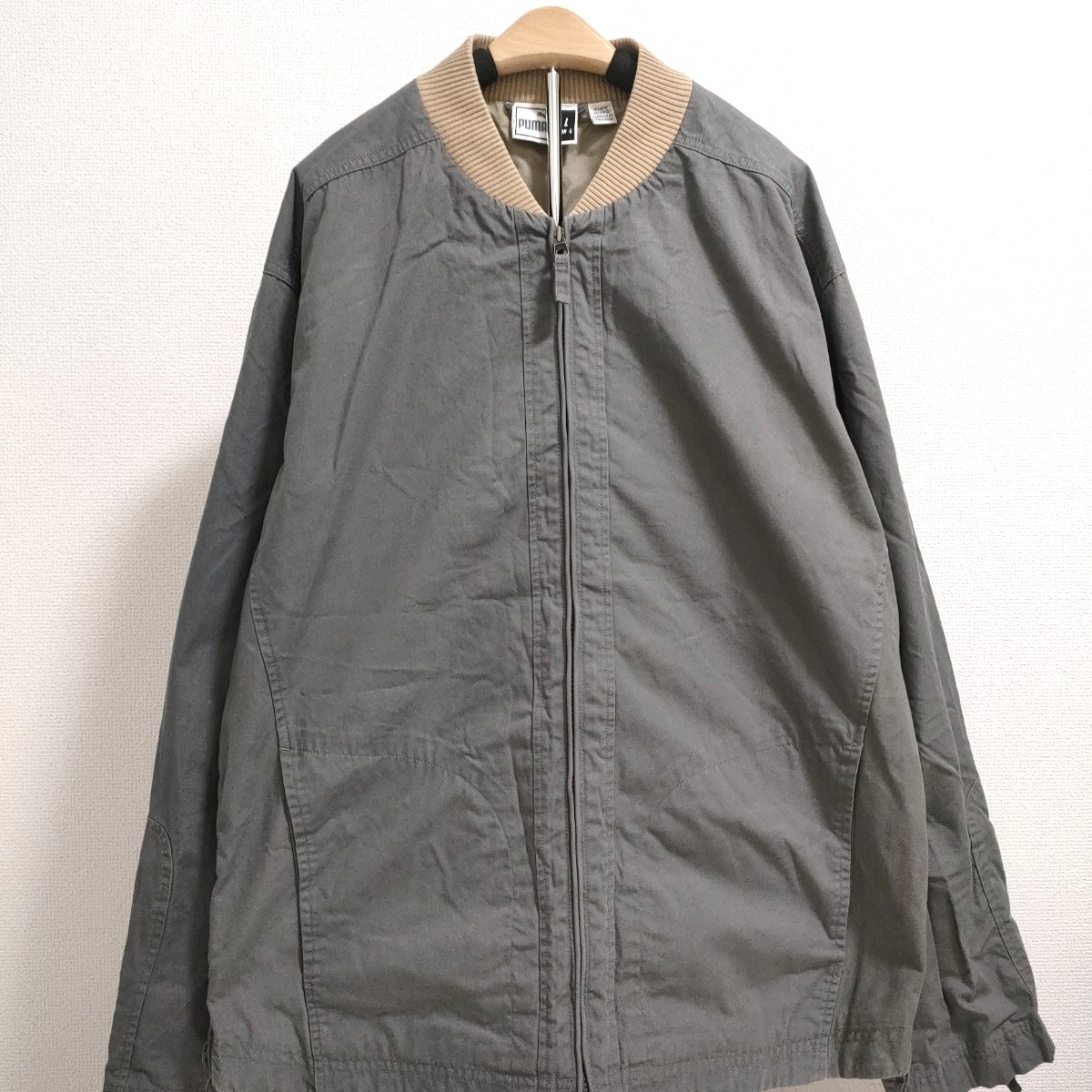 PUMA プーマ ヒットユニオン オールド ヴィンテージ ボマージャケット カーキグレー Lサイズ コットン100% ブルゾン 袖裾ジップデザイン