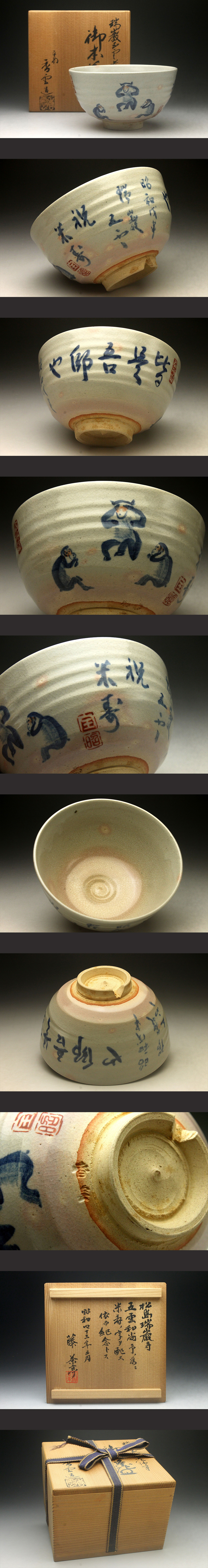 【余韻】 竜谷窯 宮川香雲 瑞巌寺 加藤五雲 老師筆 三猿絵 茶碗★『皆是吾師也』 共箱 無傷美品<同梱可>