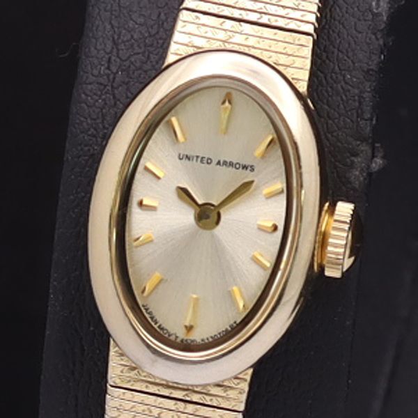 稼働 良品 ユナイテッドアローズ QZ 4520-S091292 オーバル ゴールド系文字盤 レディース腕時計 YSD