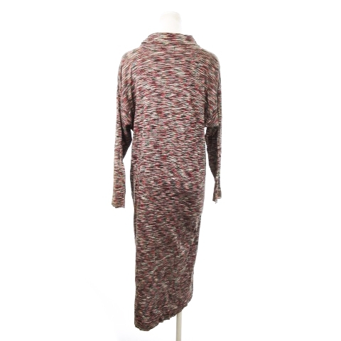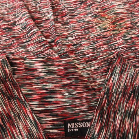 ミッソーニ MISSONI INTIMO ロングワンピース ショールカラー Vカット 長袖 総柄 M 赤 レッド /MN9 ■GY18 レディース