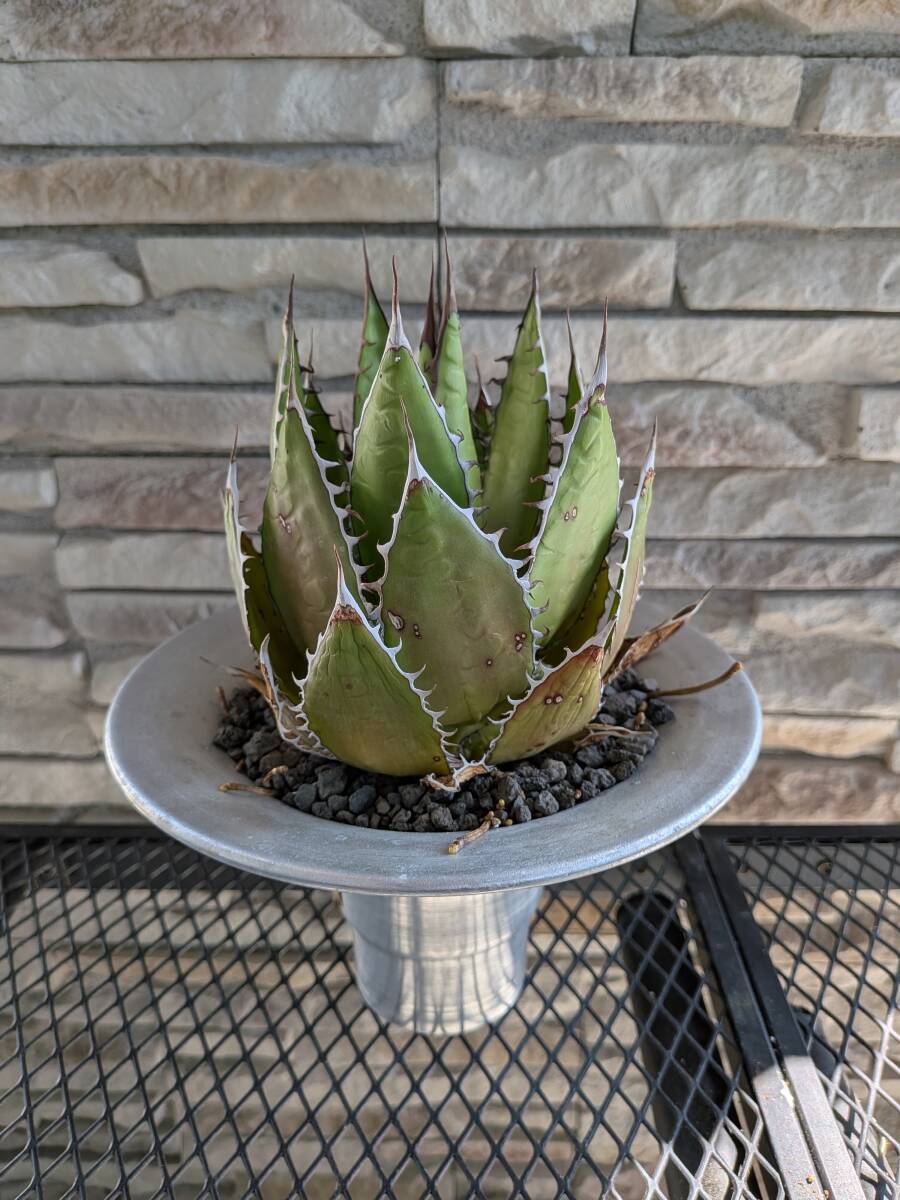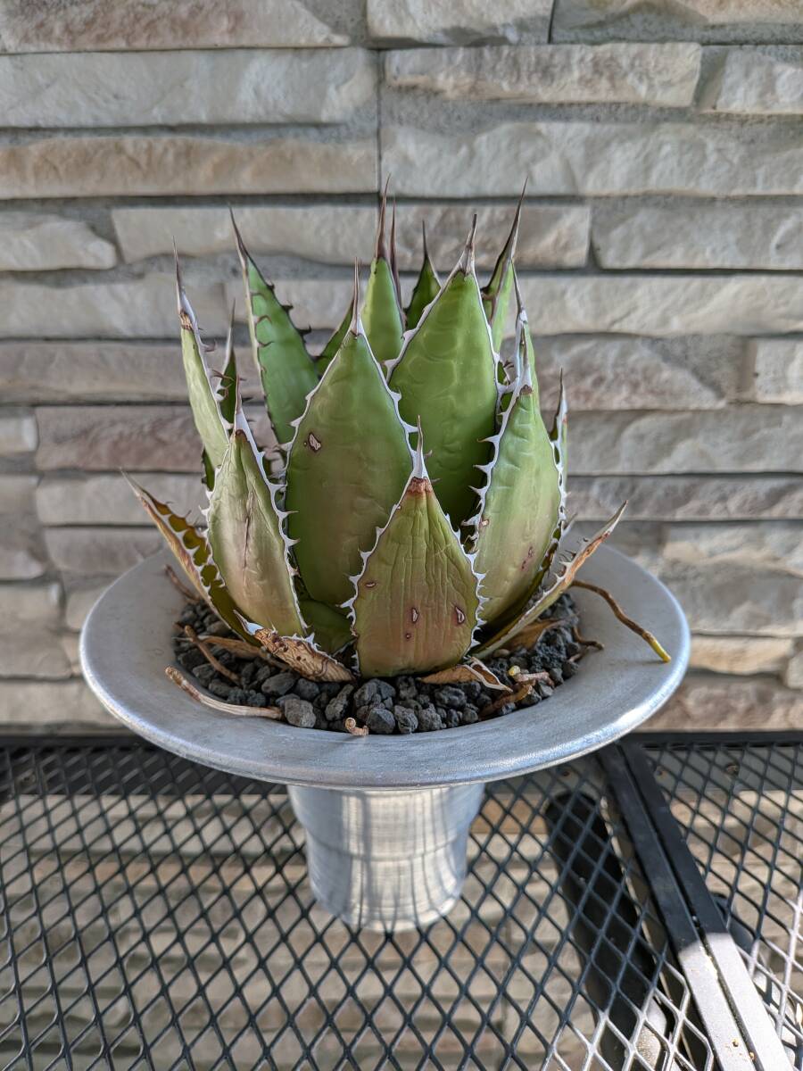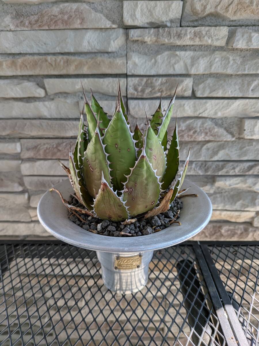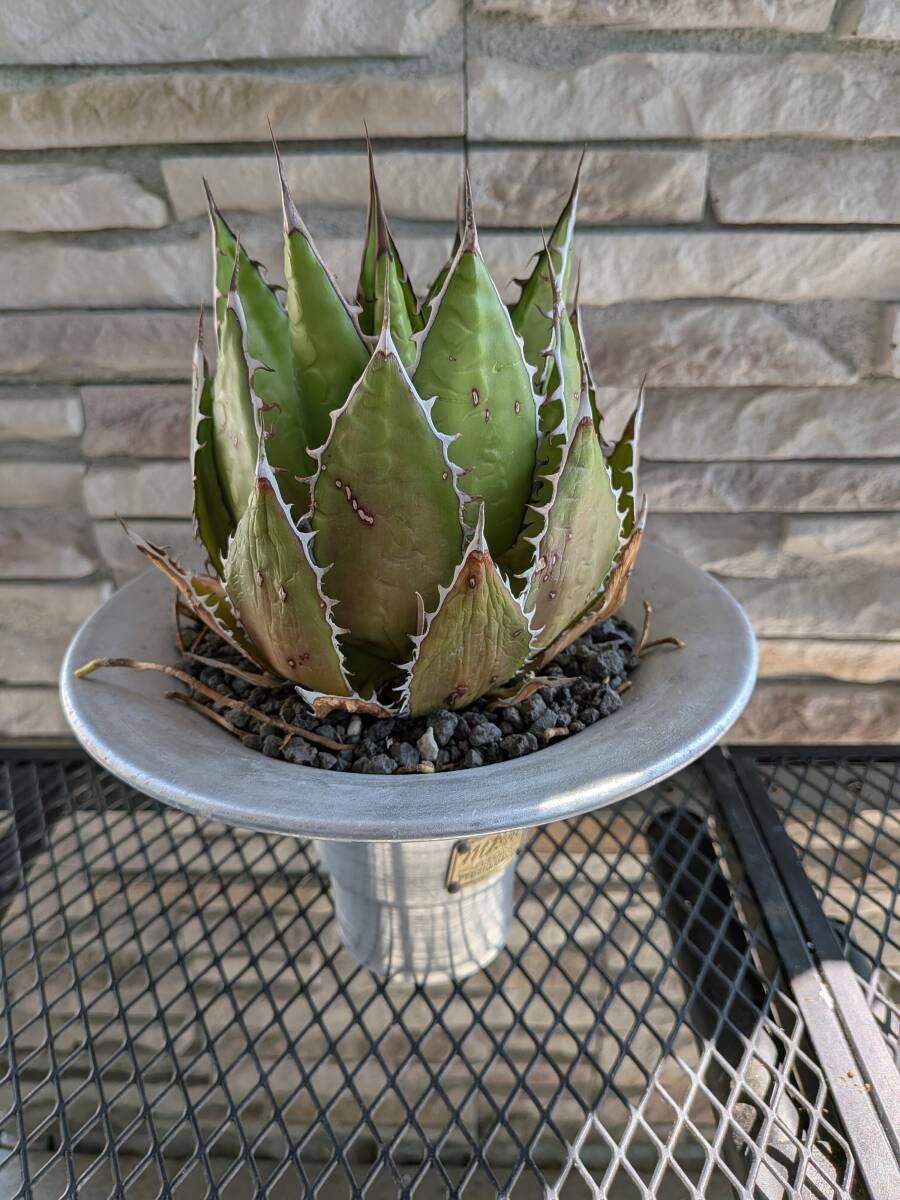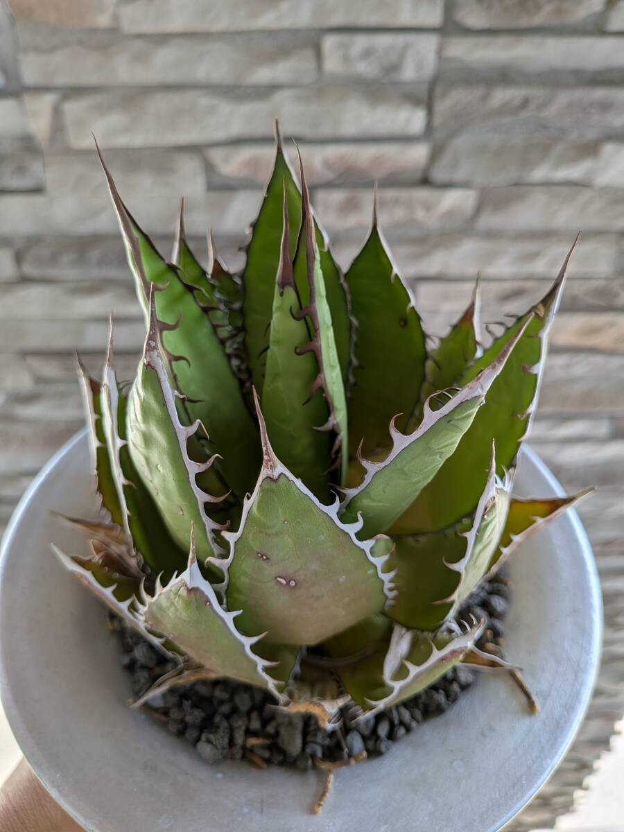 薄葉で力強い葉と鋭いトゲが特徴的な、存在感抜群の株です。