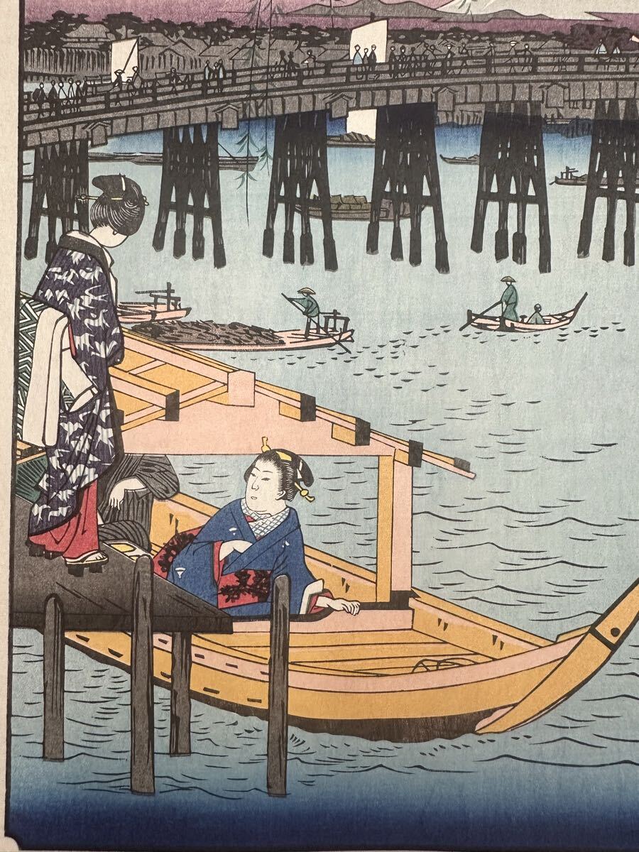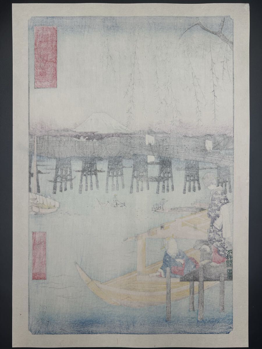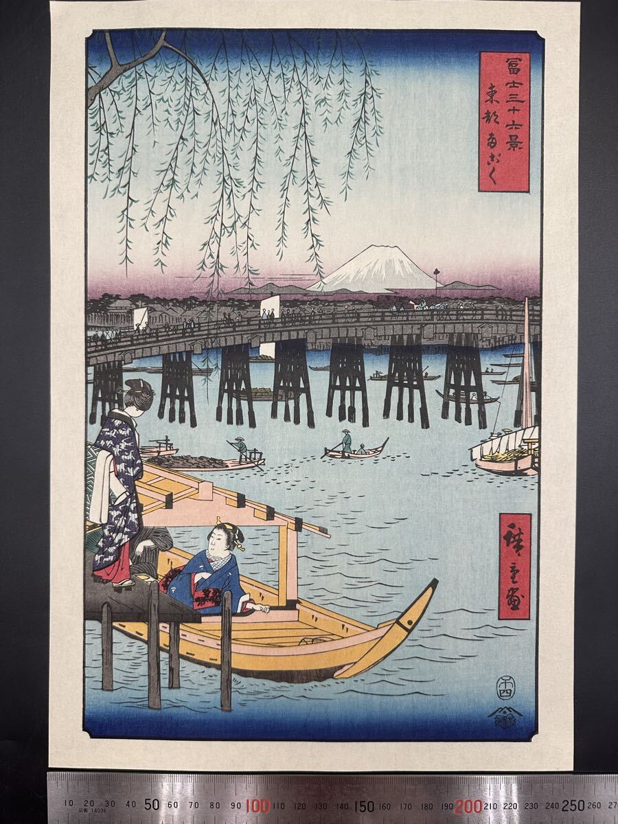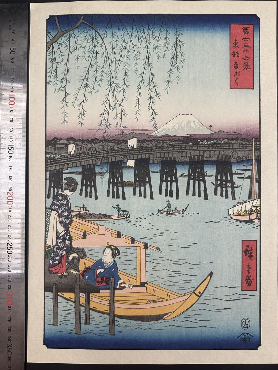 【真作】大正期 浮世絵木版画 歌川広重「冨士三十六景 東都両ごく」名所絵 大判 錦絵 保存良い