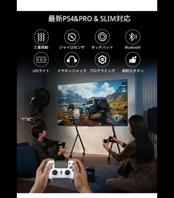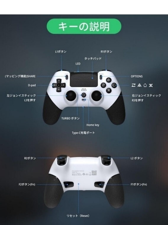 【2024 PS4コントローラー】PS4コントローラーは最新の外観デザインを採用。新しい背面ボタンが追加されました:より多くのボタンの組み合わせを拡張するためのバックボタン機能を追加しました。P4 / P4 Pro / P4 Slim / PS3 / PC(Windows7/8/10)と互換性があります。スマートフォンにも接続できるコントローラーです、このコントローラは機能が先進的で、操作が快適でスムーズです。