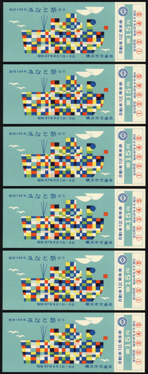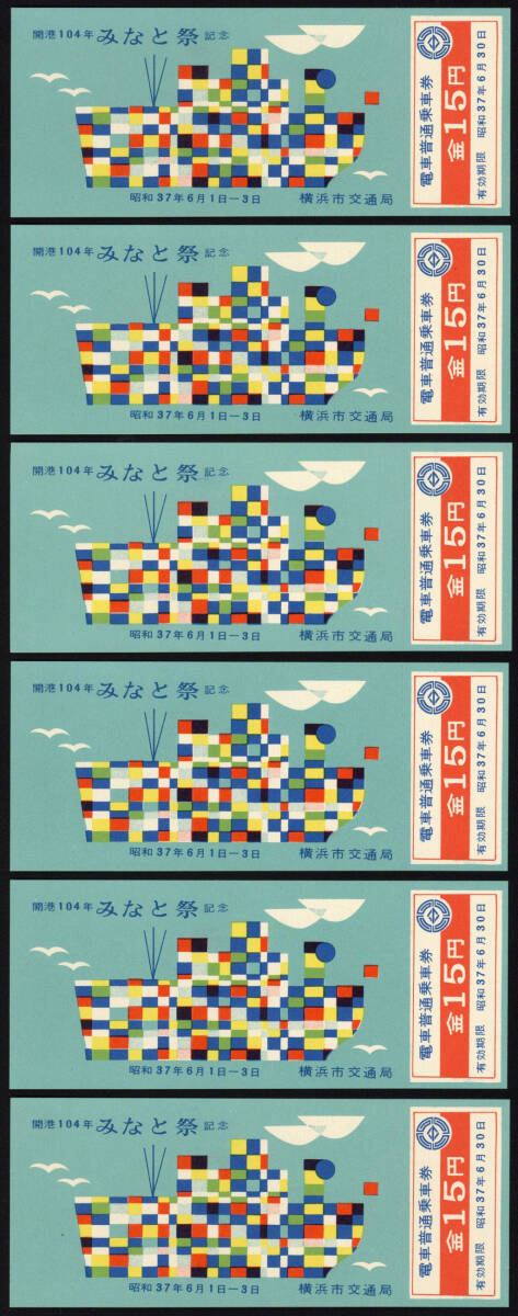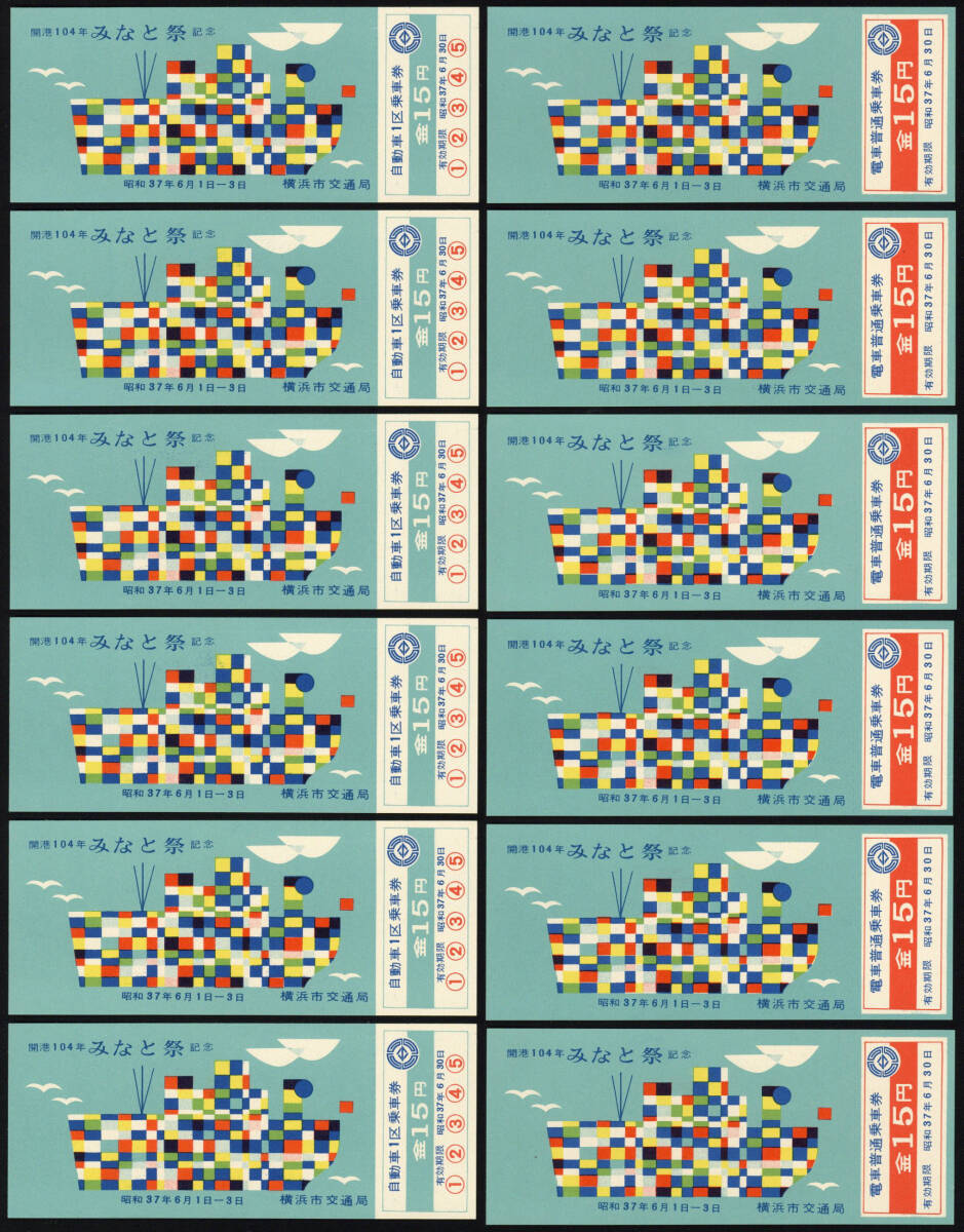 S37 横浜市交通局 開港104年 みなと祭記念 自動車1区乗車券/電車普通乗車券 2種計12枚