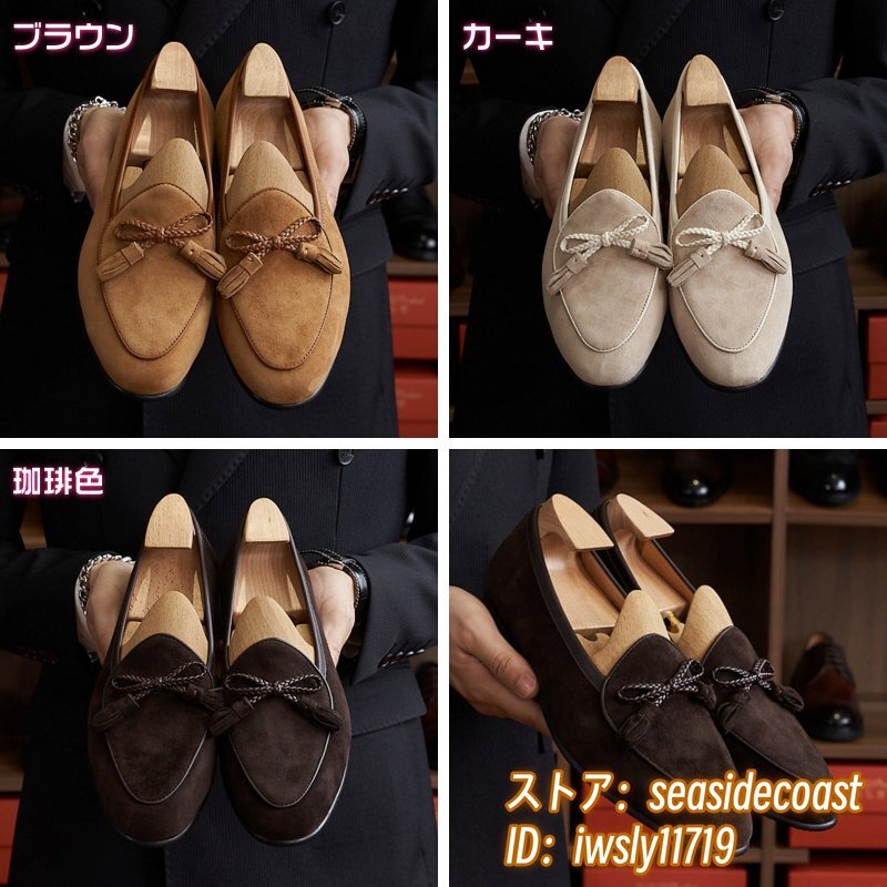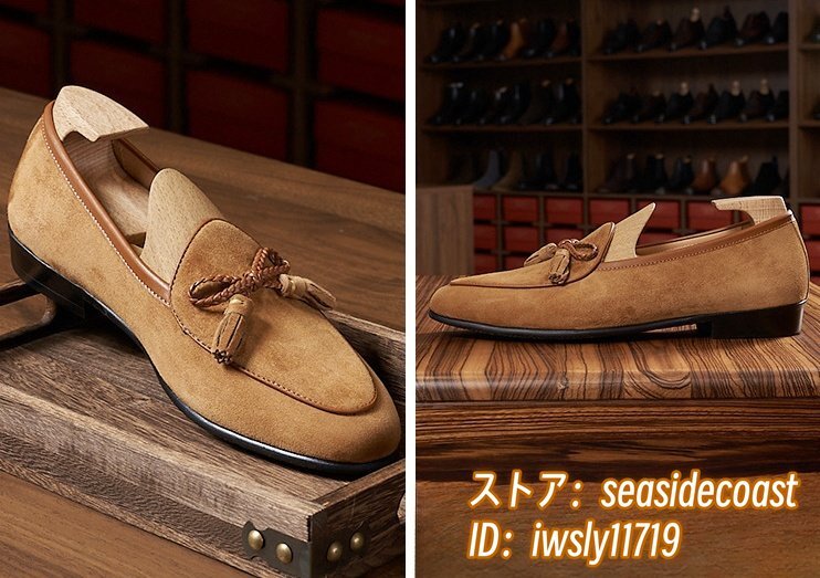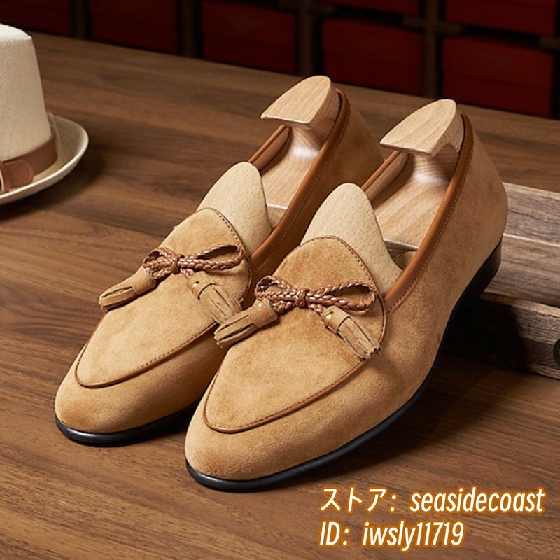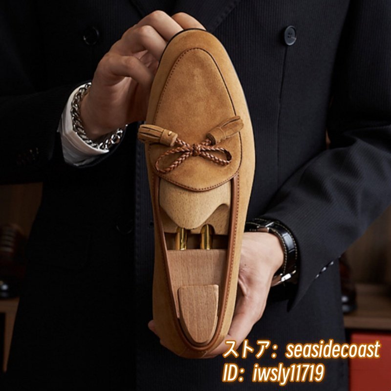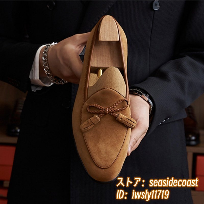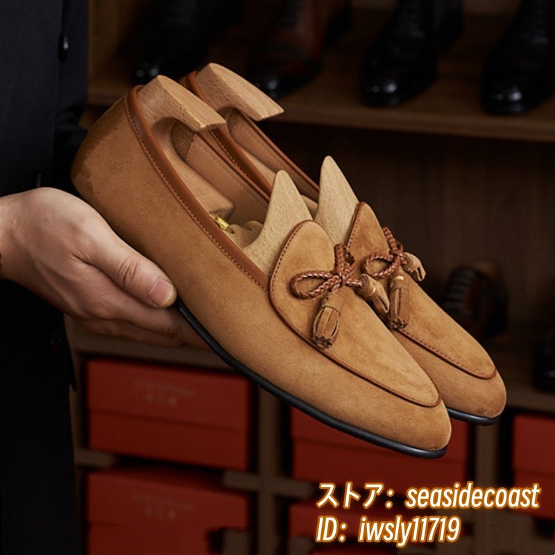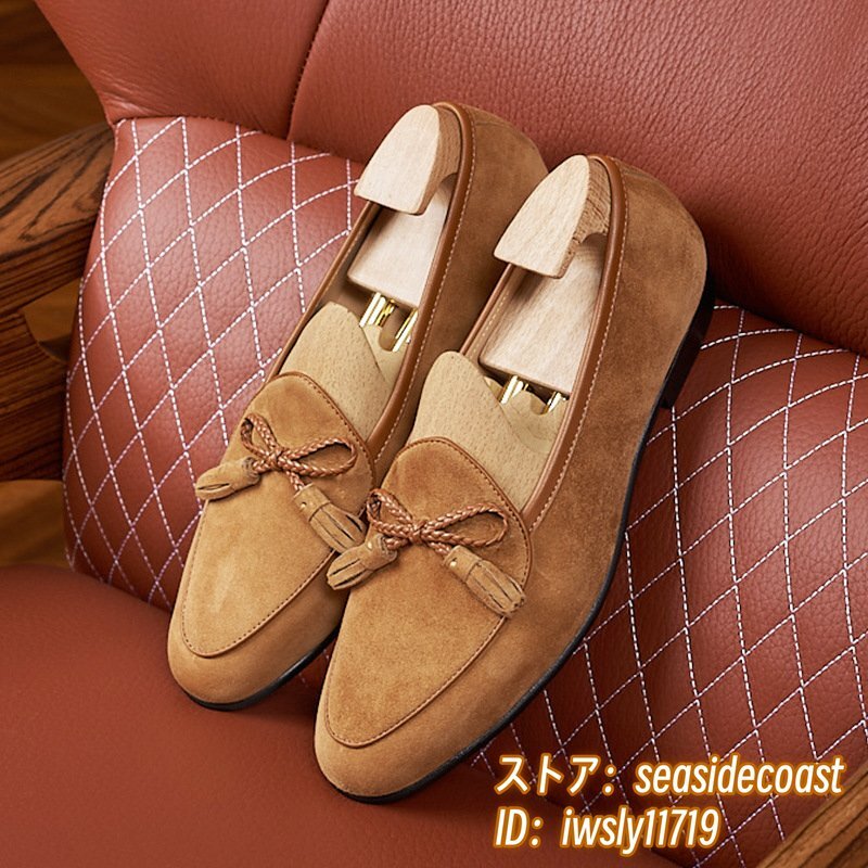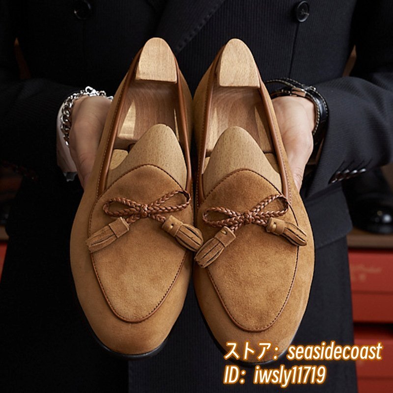 定価10万■最高級 ビジネスシューズ スエード革 職人手作り 本革 レザーシューズ タッセル ローファー 紳士靴 革靴 牛革 ブラウン 27.0cm
