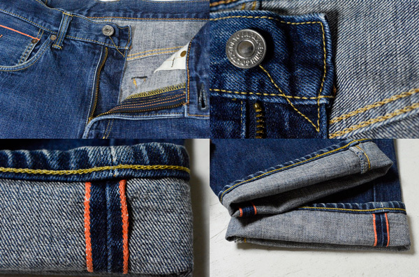 当時ジーンズがWORK WEARとしての用途で製造されており、大戦中という時代背景から限られた物資で丈夫な物作りを強いられていた時代のジーンズをイメージし、単一番手・単一色の縫製糸を使用し、12針以上の細かいミシンピッチで縫製。 太目の武骨なジーンズが40年代のヴィンテージジーンズを象徴しています。