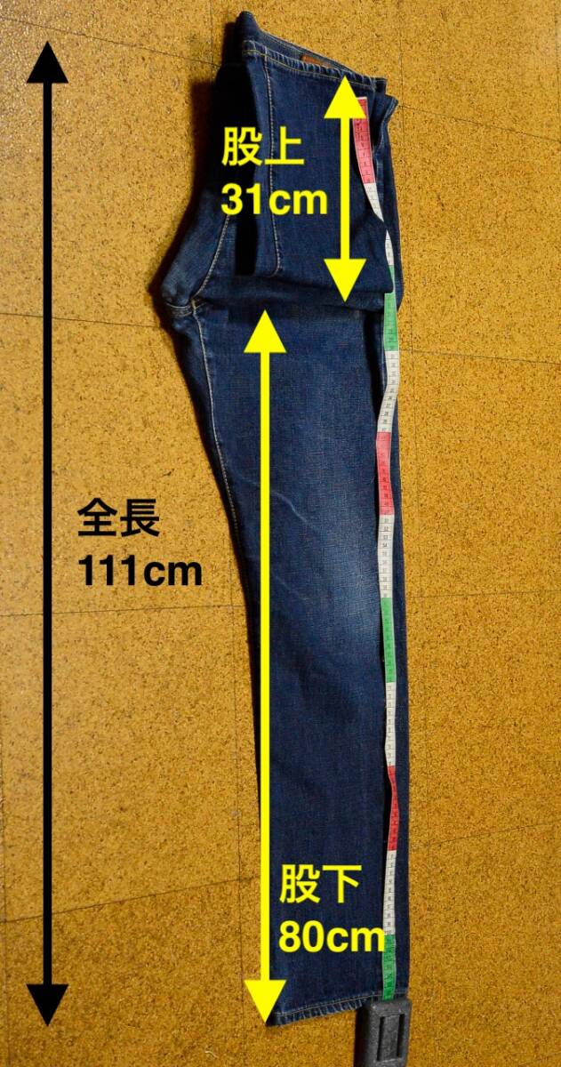 この表の中で、ウエスト○○cmとあるのは、商品のウエストの寸法になります。