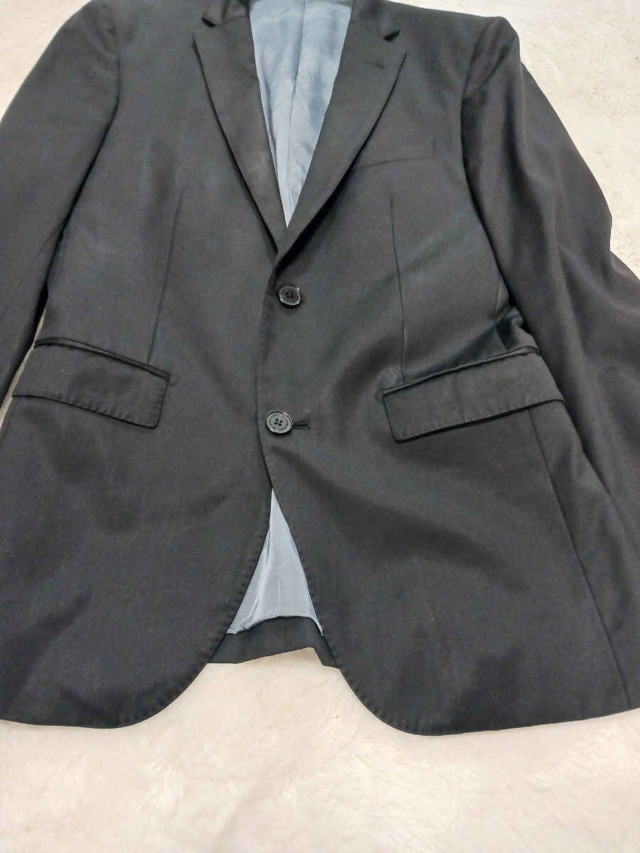 シンプルで着回しやすいブラックの2ボタンジャケット。