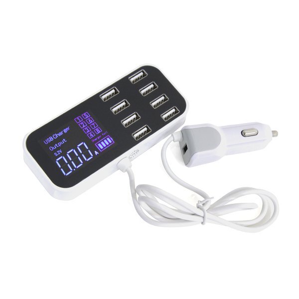 車載USBアダプター 8ポート 車載充電器 USB増設 2.4A 急速充電 シガーソケット チャージャー LEDディスプレイ スマホ タブレット 小型 軽量
