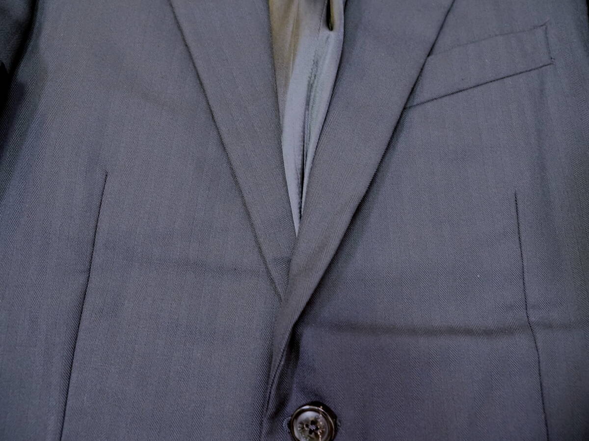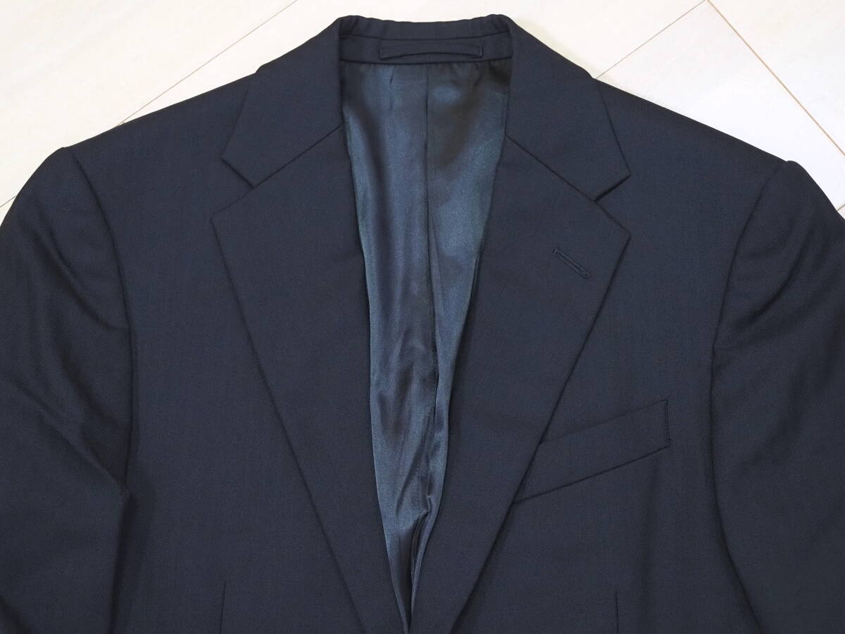 フロントは2つボタンで裏地は総裏地、サイドベンツ、袖は開き見せのつくりです。