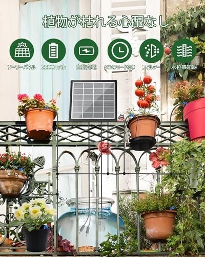 ソーラーパワーで自動給水、複雑な配線等が一切いりません。