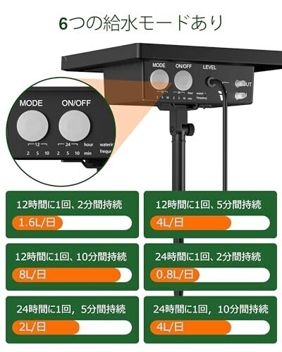 【6つ水やりモード】タイマー動作で自動で水やり、6つ水やりモードがあり、コントロールパネルで水やりの方式と間隔時間が自由に設定できます、水やりも楽になります。