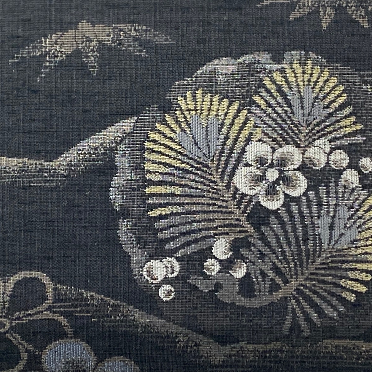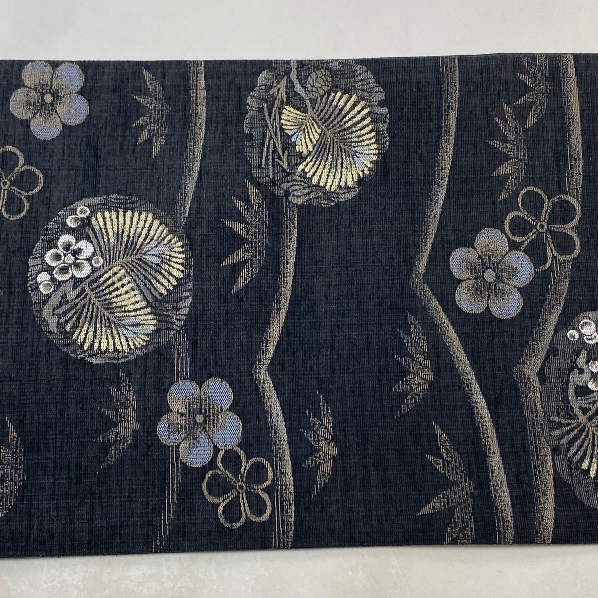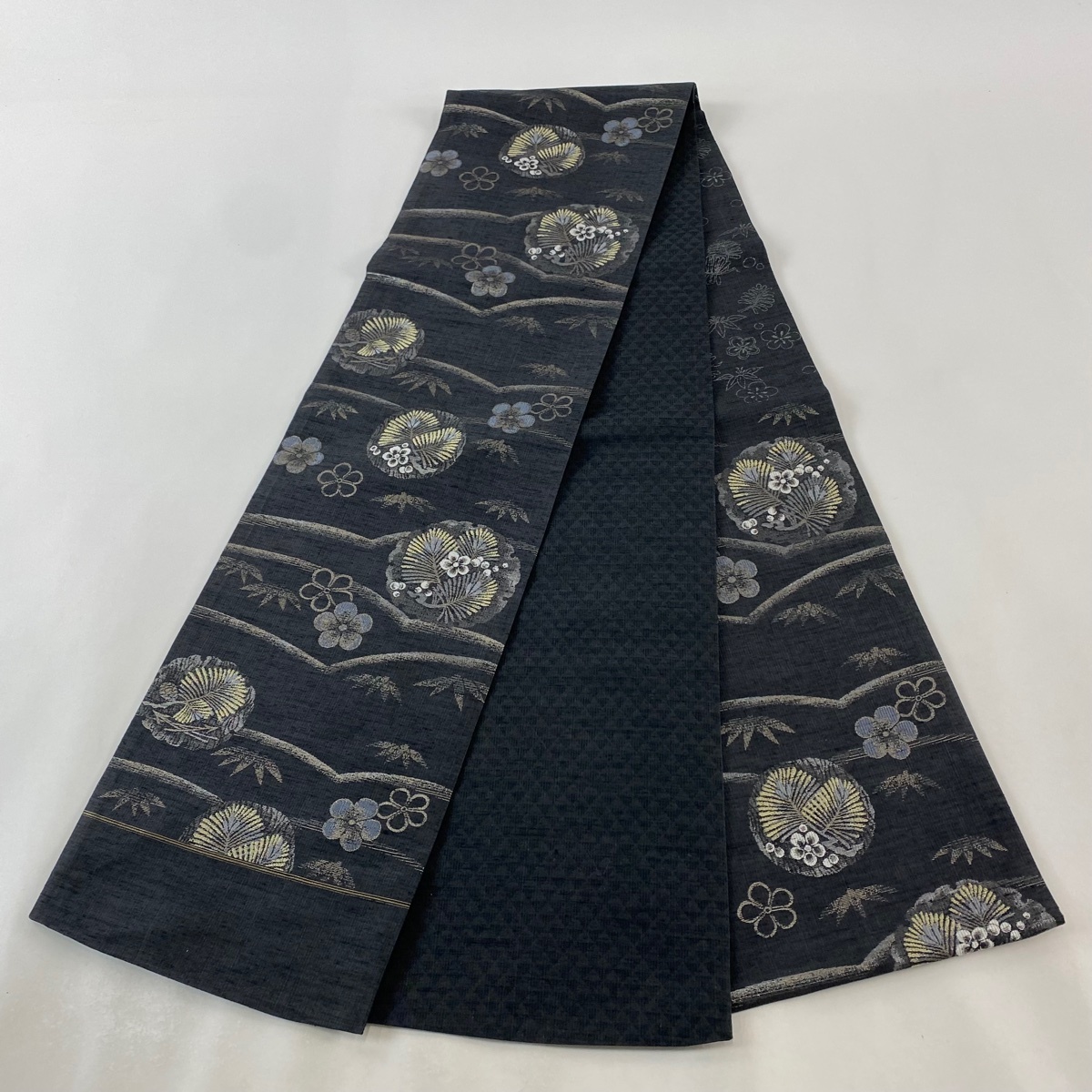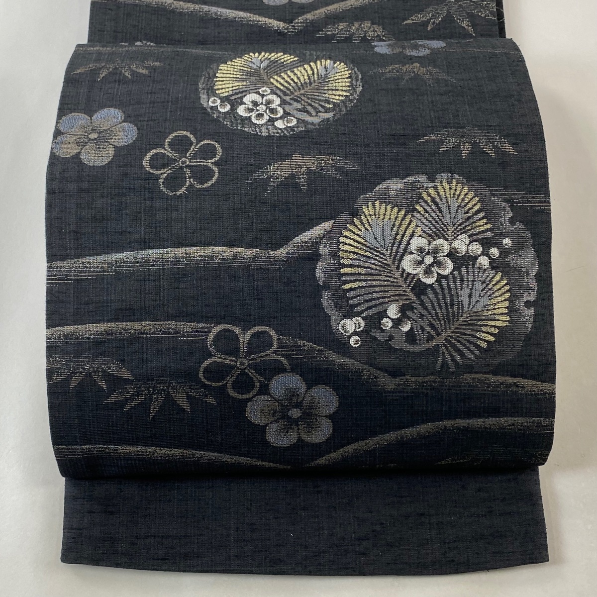 | 袋帯 美品 秀品 紬地 雪輪 松竹梅 箔 墨色 六通 正絹 【中古】 |