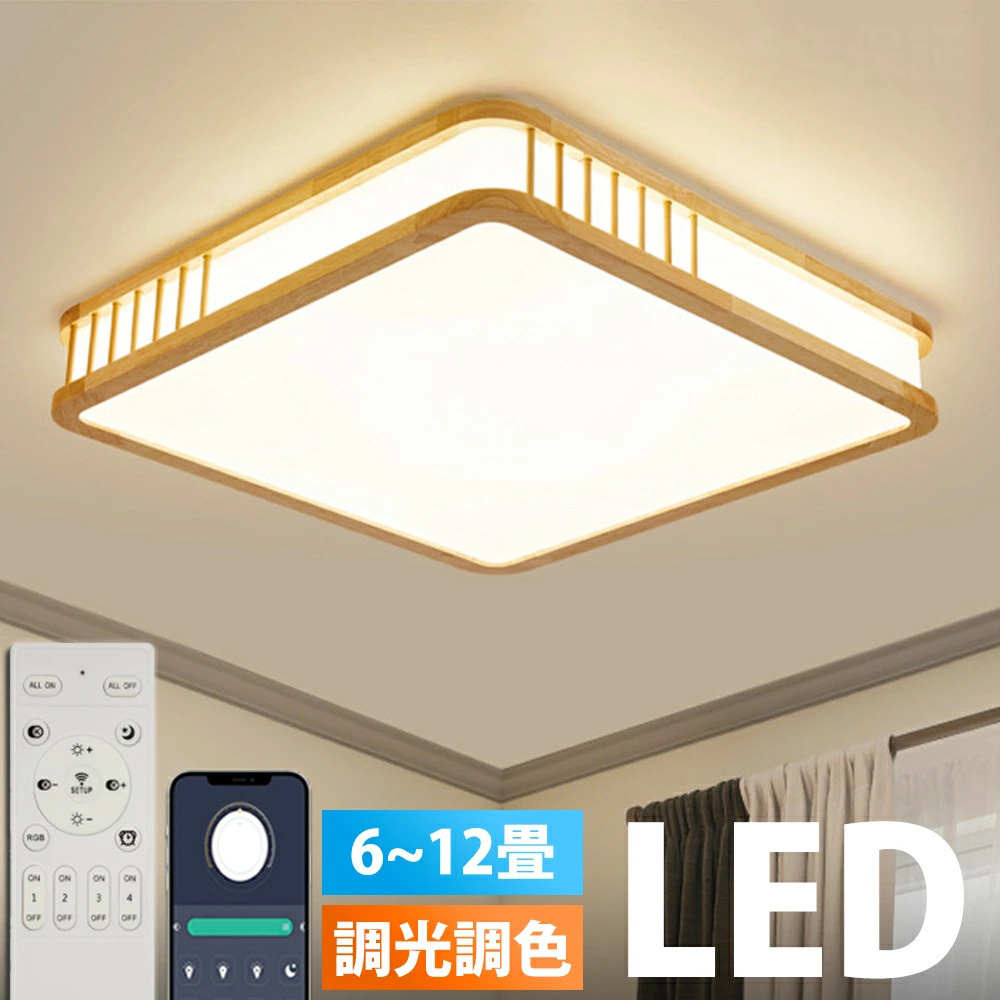 シーリングライト おしゃれ 天然木 LED 調光調色 リモコン操作 リビング 照明 和室 天井照明 6畳-10畳 四角形 引掛け対応 工事不要 40-60cm
