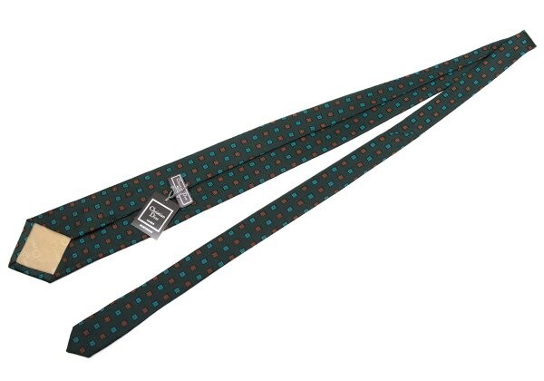 | クリスチャンディオールChristian Dior スクエアジャガードシルクネクタイ 緑オレンジF |