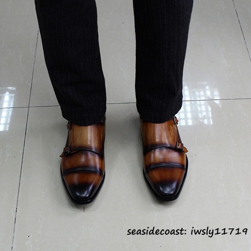 入手困難*ダブルモンクストラップ メンズ 本革 レザーシューズ 職人手作り ビジネスシューズ 最上級牛革 紳士靴 革靴 新品 ブラウン 24.5cm