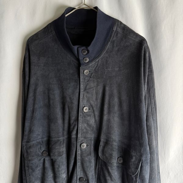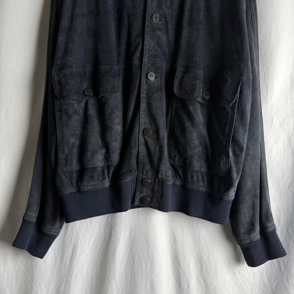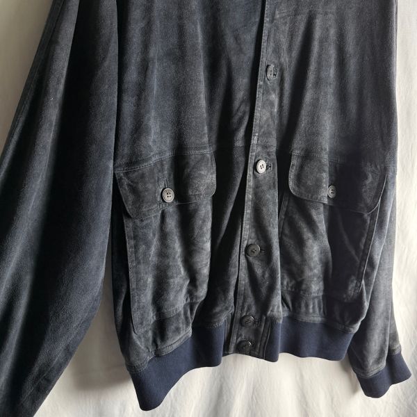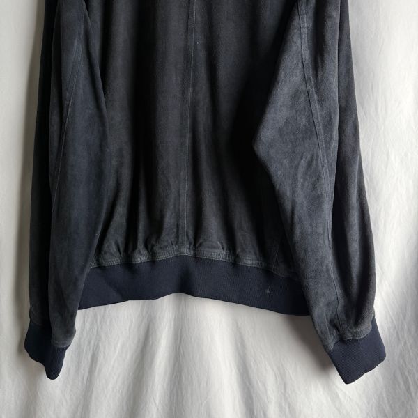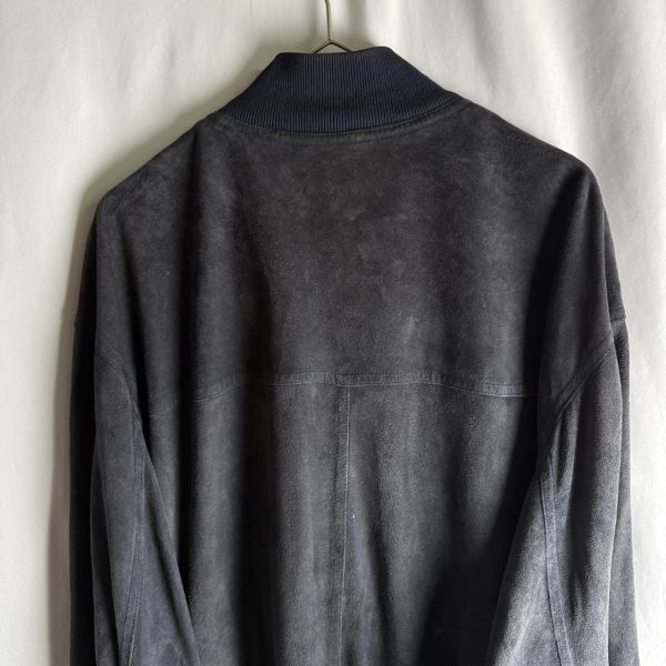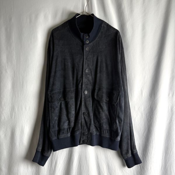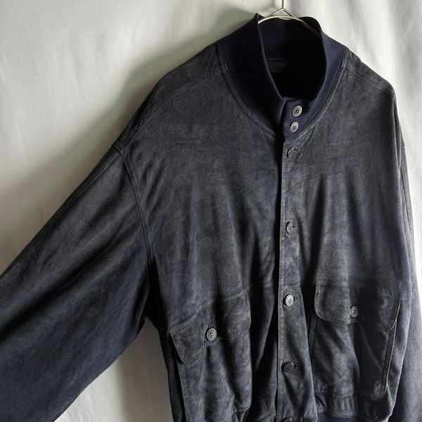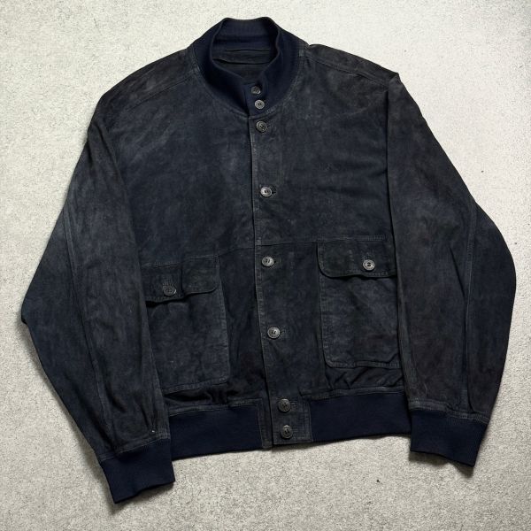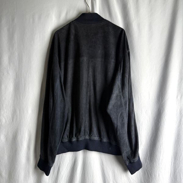 イタリア製 90s ヌバック レザー ボンバー ブルゾン 52 L-XL ダークネイビー A-1 バルスター ジャケット 80s オールド ビンテージ