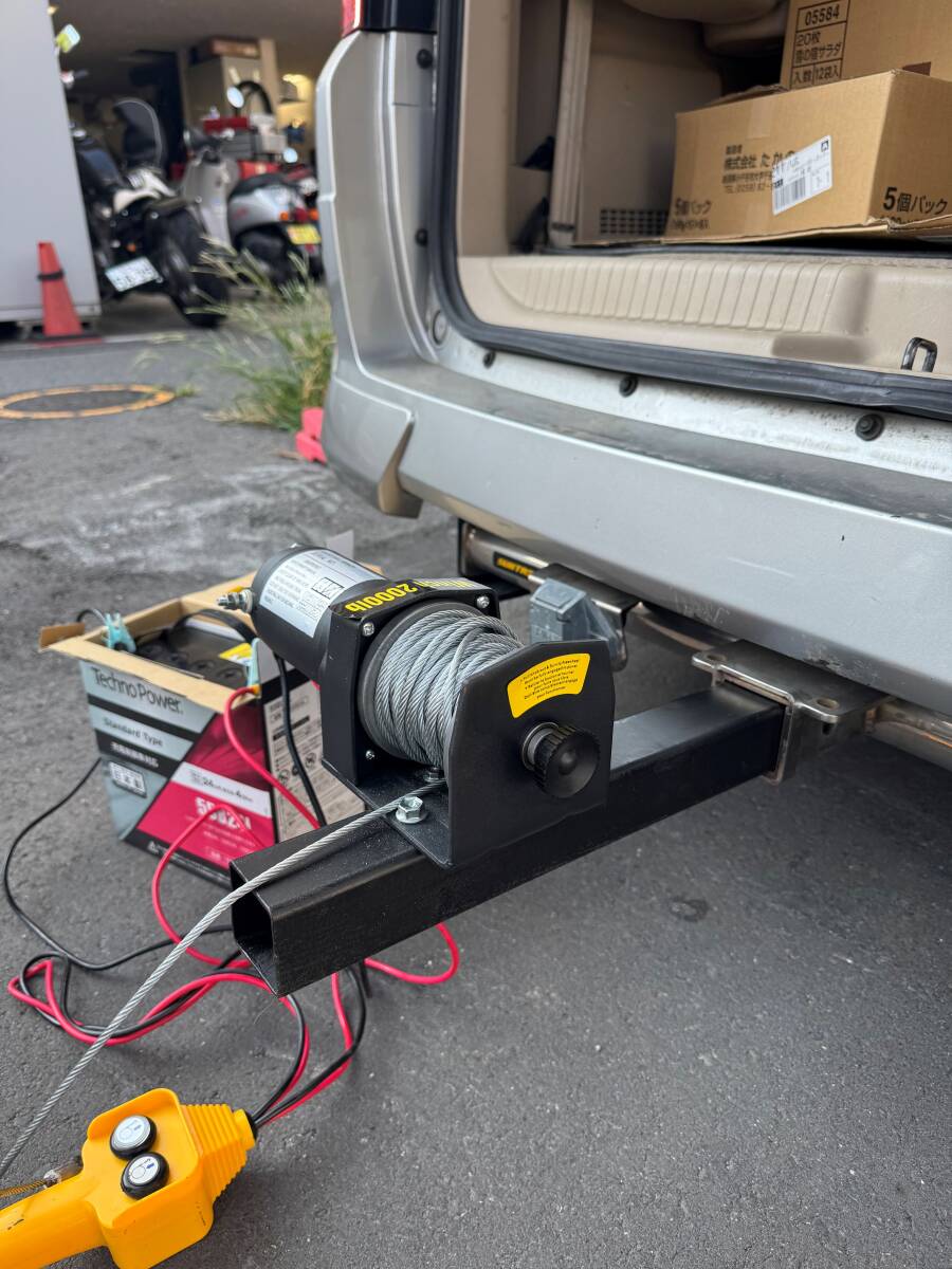 ウインチは新品で購入してヒッチメンバーに取り付けるブラケットは自作しました。