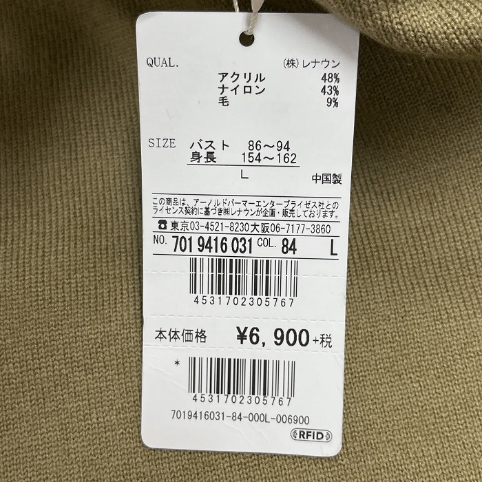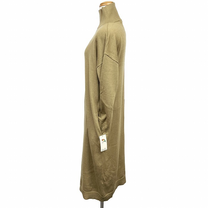 商品タイトル | 【新品】Arnold Palmer ニットワンピース ハイネック ロング 長袖 アクリル×ナイロン×毛 L ベージュ ベージュ×赤×緑×黄 レディース |