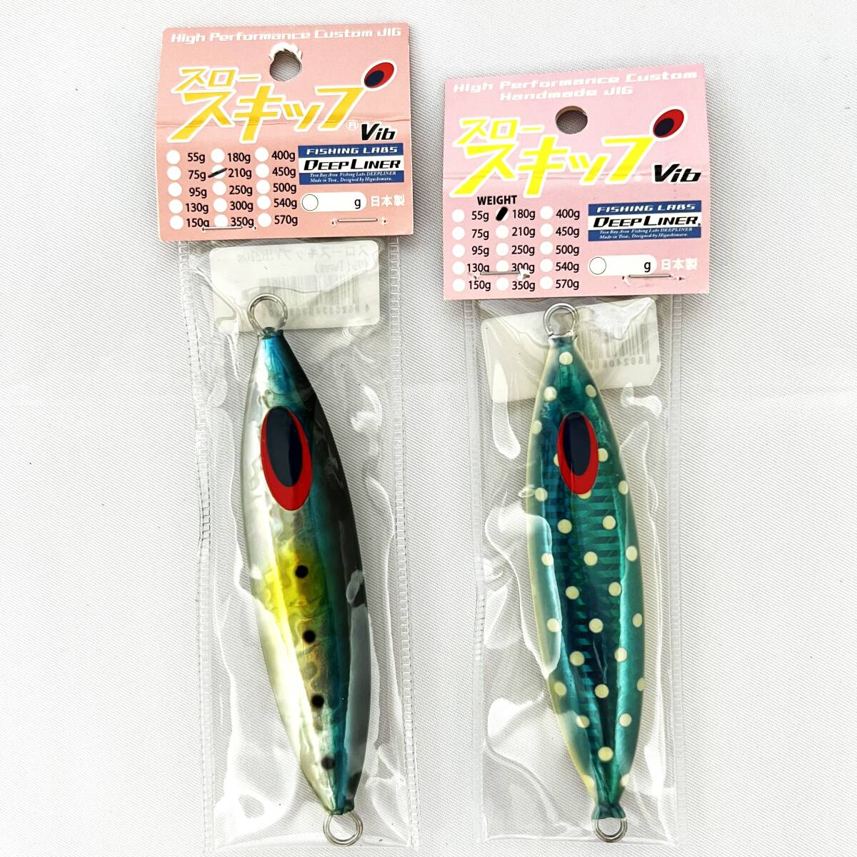 スロージギングを切り開いた「DEEP LINER」の「スロースキップVib」の未使用品2点セットです。青物はもちろん、マダイや根魚にも実績のあるモデルで、即戦力としておすすめです。未使用品ですが、自宅保管のため中古扱いとなります。