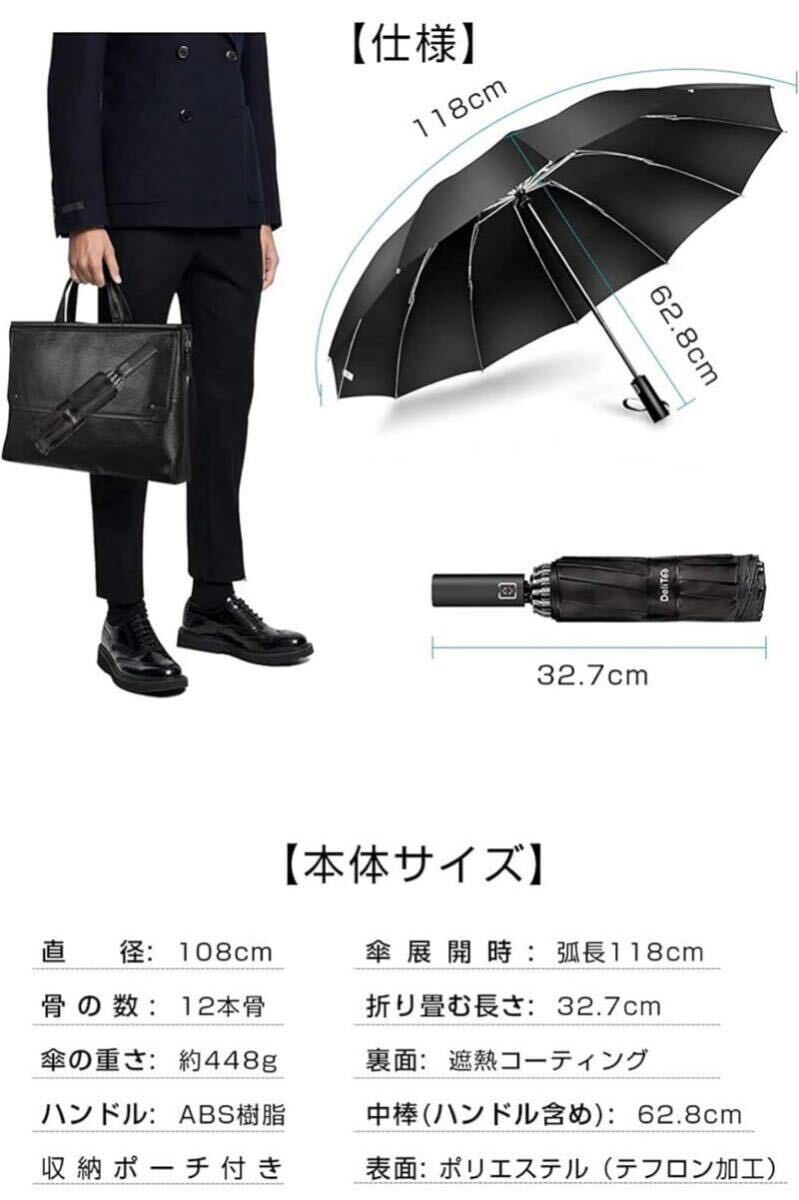 折りたたみ傘 メンズ 12本骨 超大サイズ 折り畳み傘 大きい ワンタッチ 自動開閉 メンズ傘 超撥水加工 耐風 逆折り式 折りたたみ 日傘 晴雨兼用 メンズ レディース おりたたみ傘 梅雨対策 台風対応 紫外線遮蔽 収納ポーチ付き
