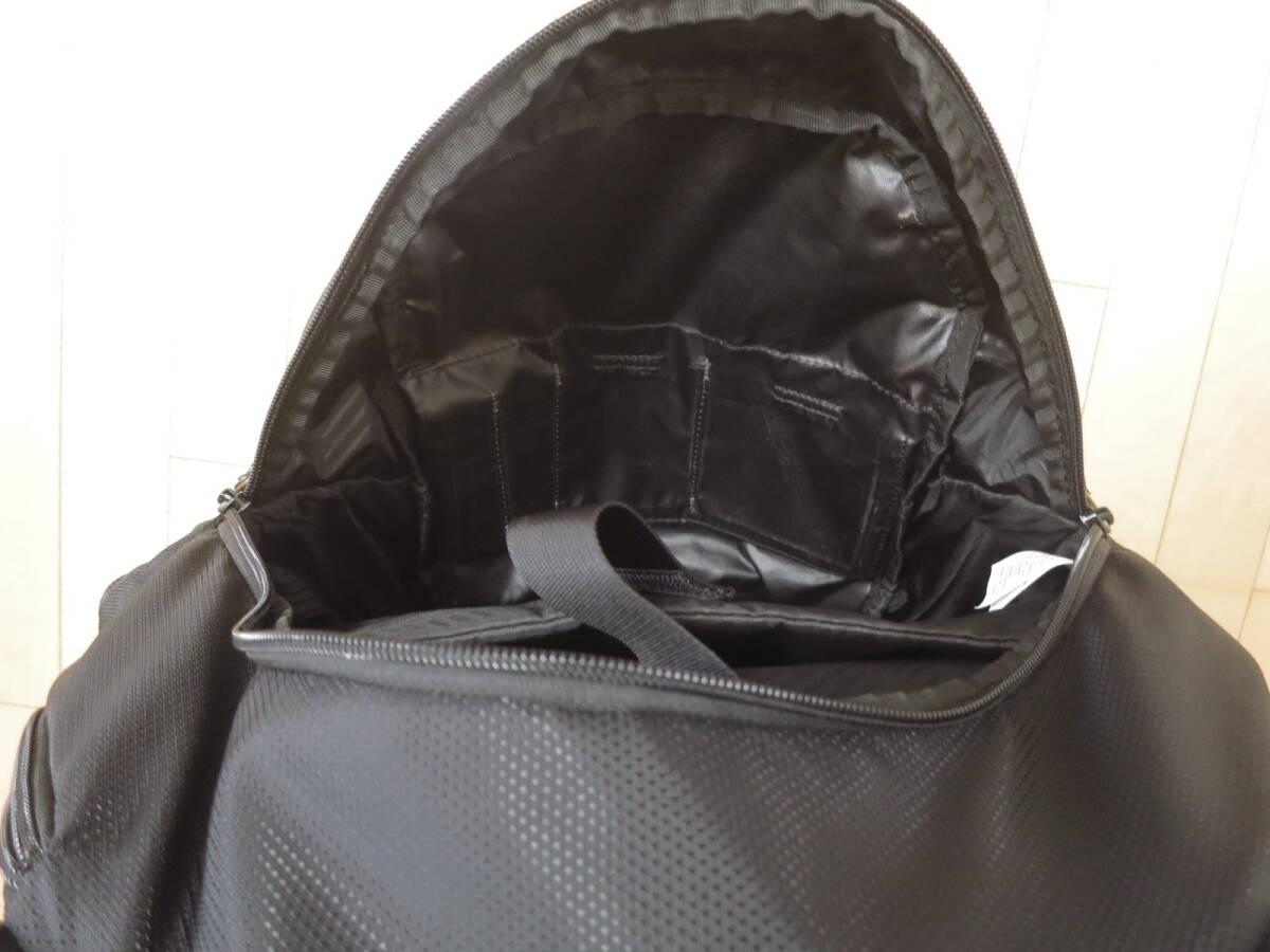 色:黒、素材:ナイロン、およその外寸:H約54cm W約40cm マチ約20cm