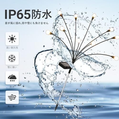 【IP65防水&防塵性能】:雨に当たる場所にソーラーライトを設置する場合は、防水性能を搭載することが大切です。