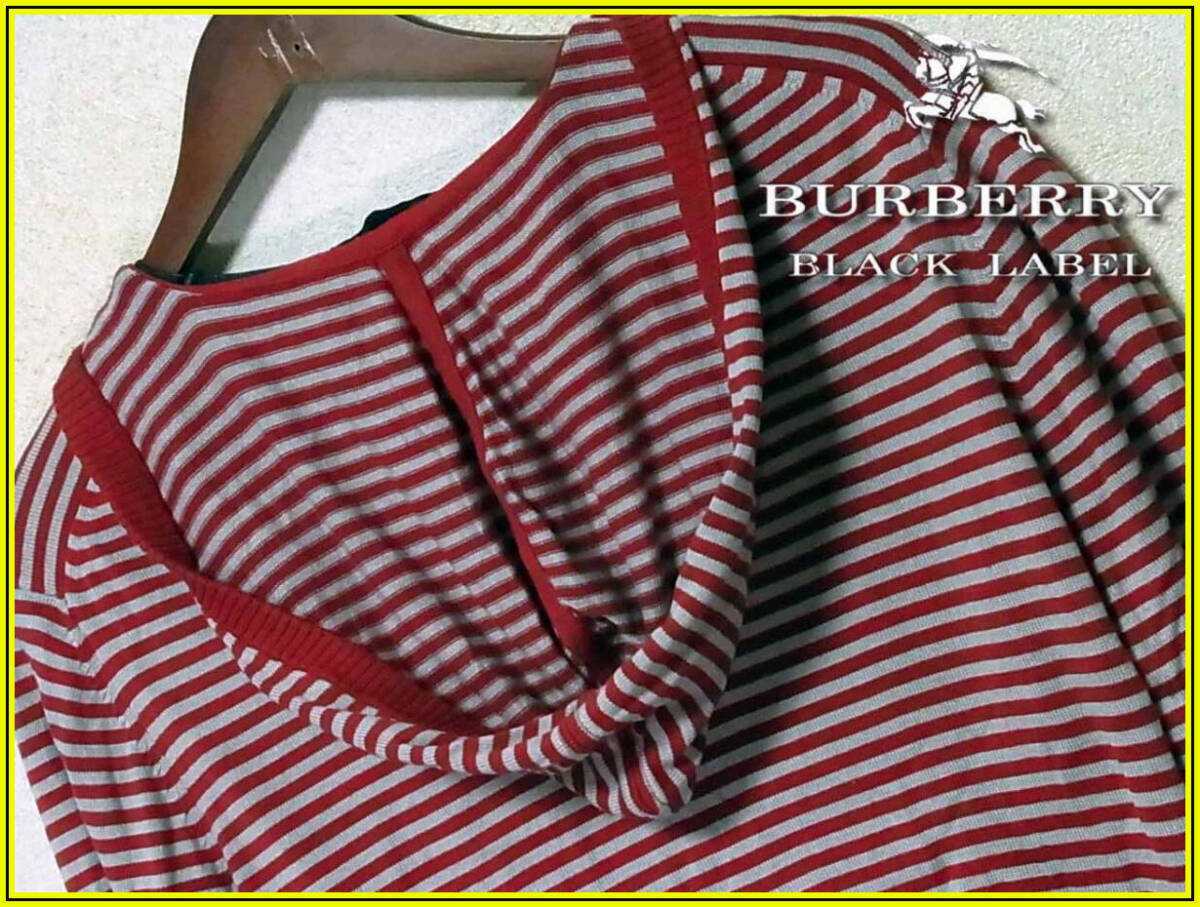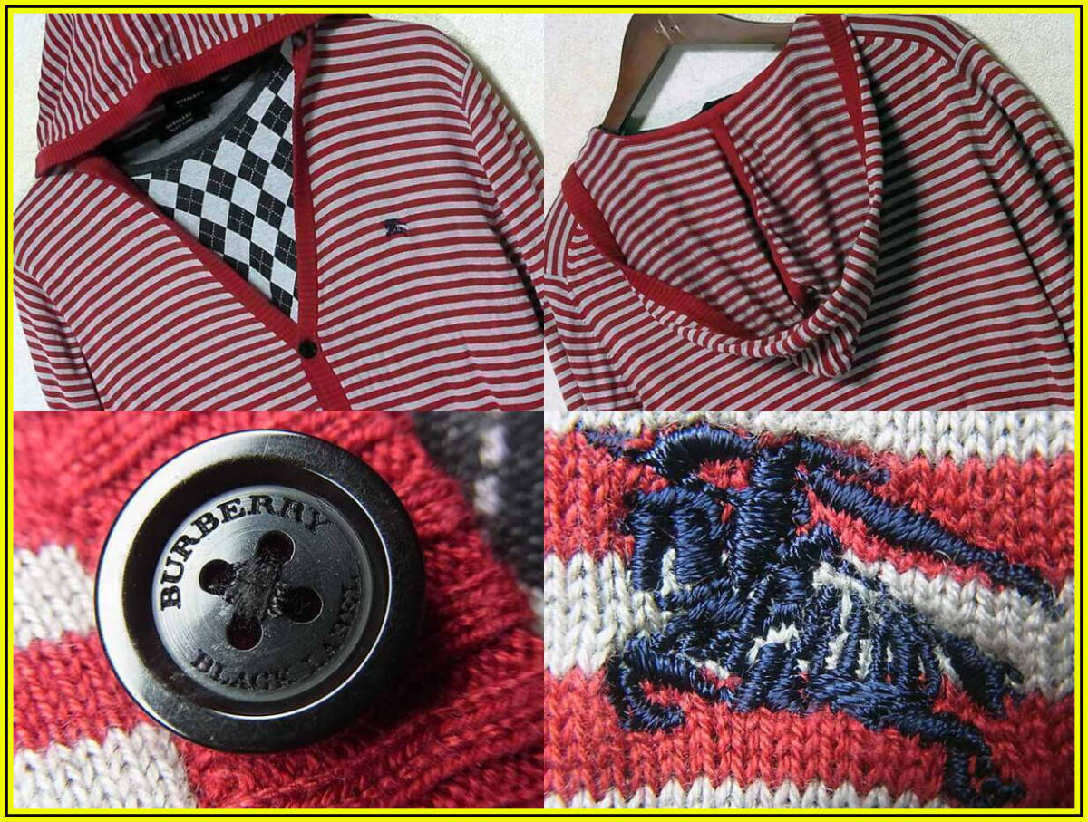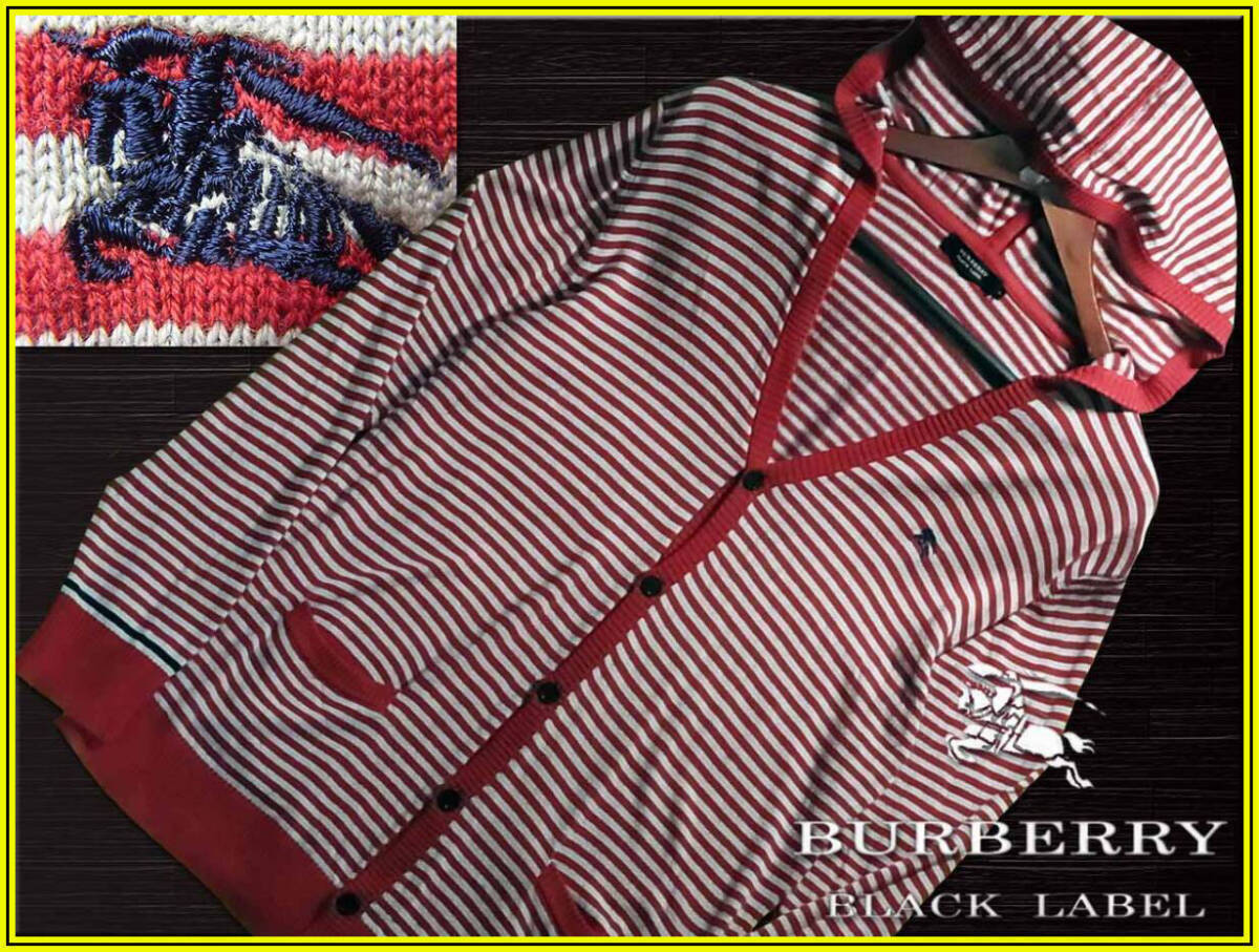 希少Lサイズ!極美品!大人気!パーカー カーディガン ボーダー ナイト刺繍入▼バーバリーブラックレーベル BURBERRY BLACK LABEL