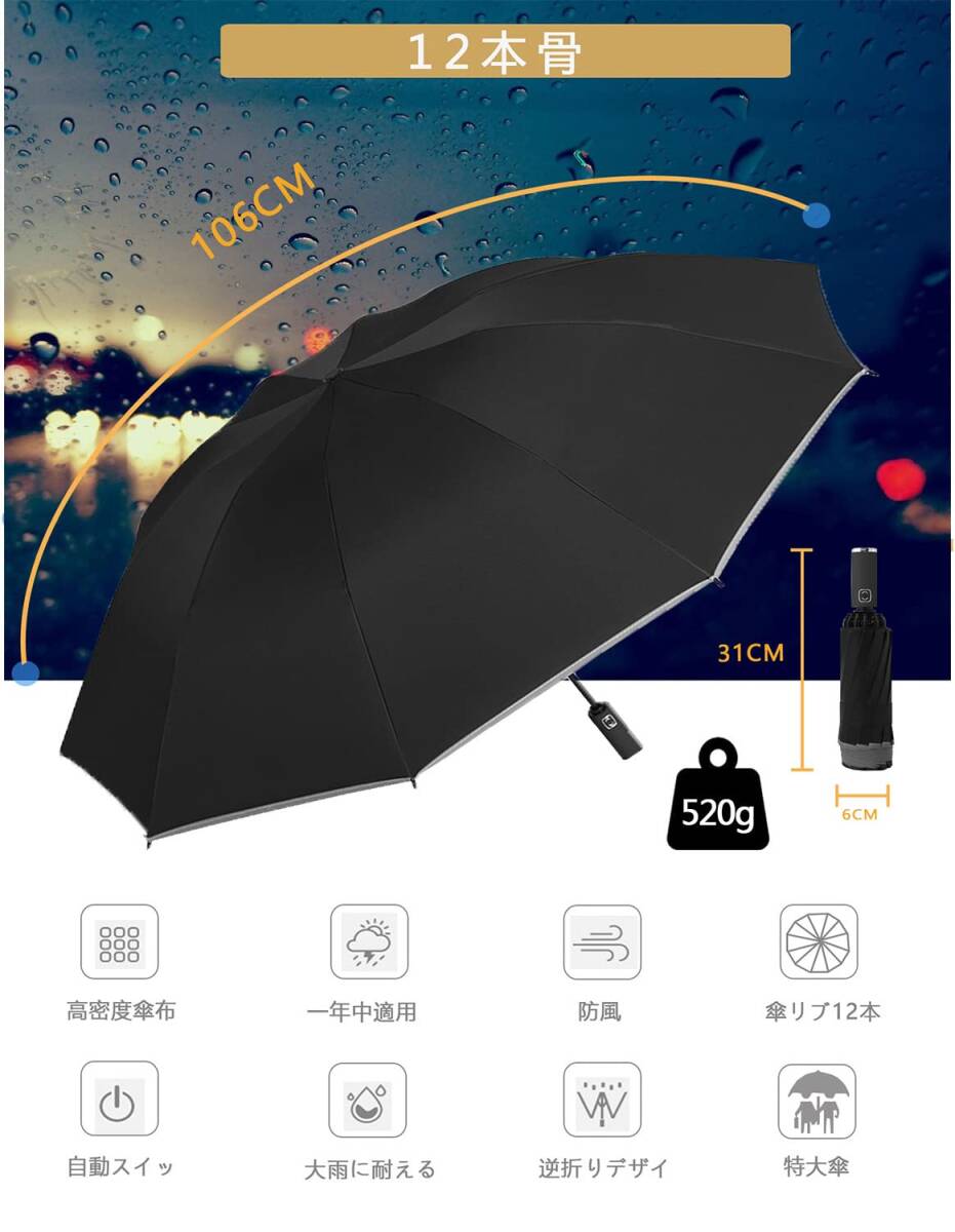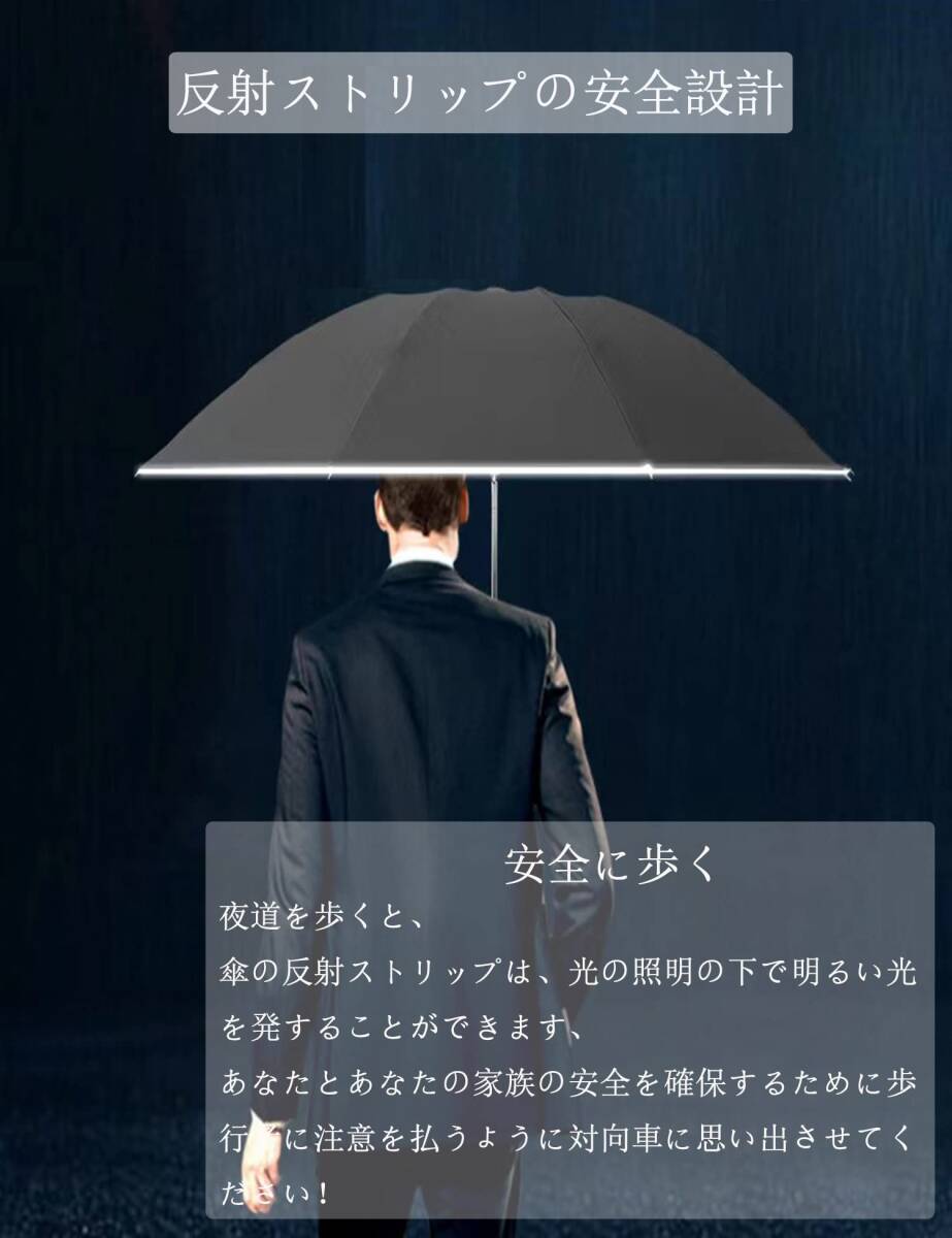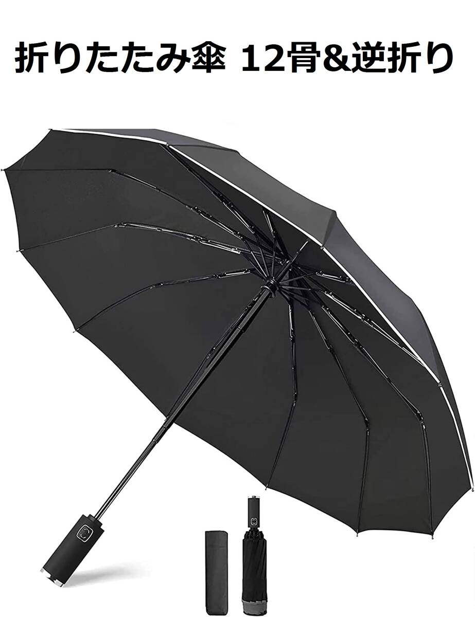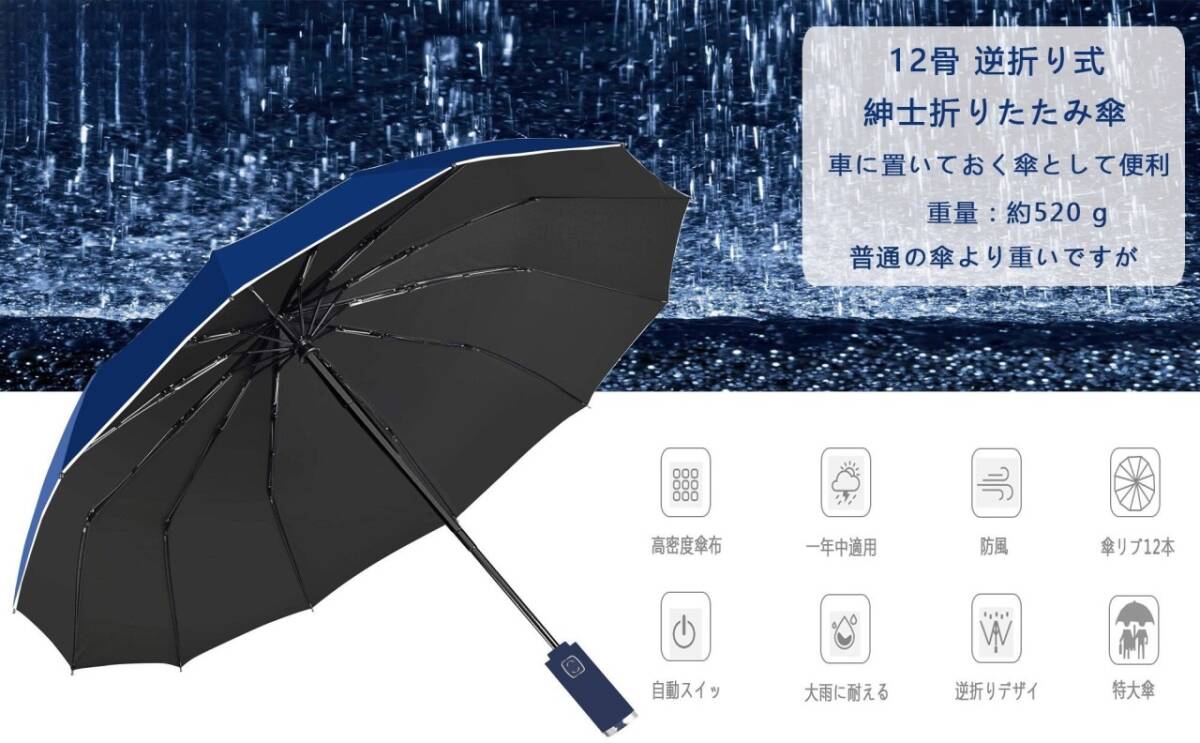 【超大サイズ・12本骨】 12骨&逆折り ワンタッチ自動開閉 大きいメンズ傘 耐風 撥水 晴雨兼用 紫外線遮蔽 UVカット 折り畳み傘-ネイビー