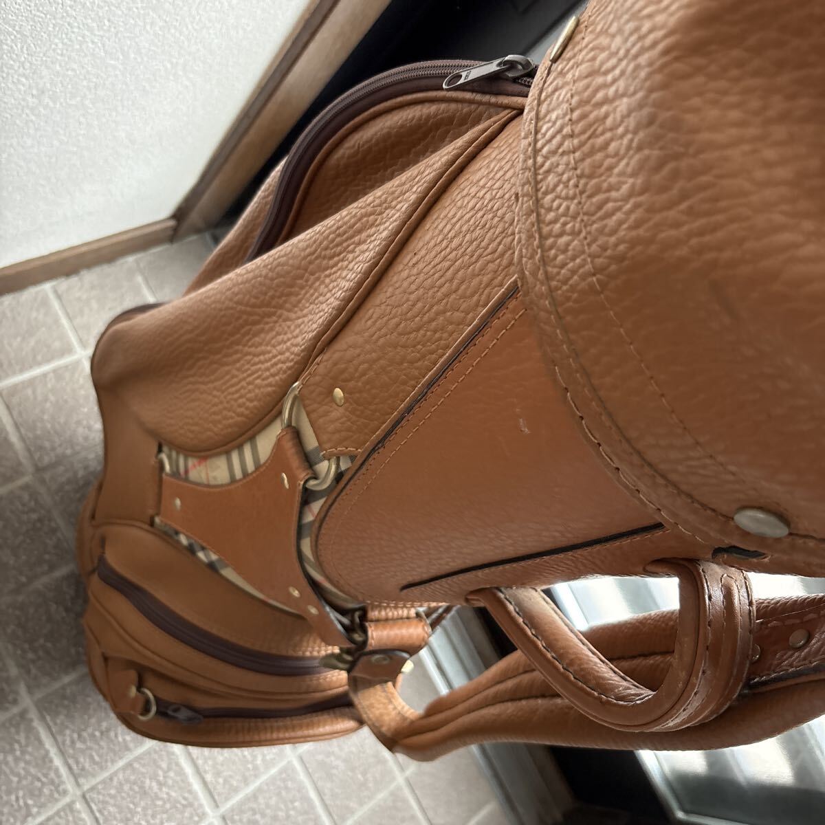バーバリー☆総レザー調ベージュゴルフキャディバッグ