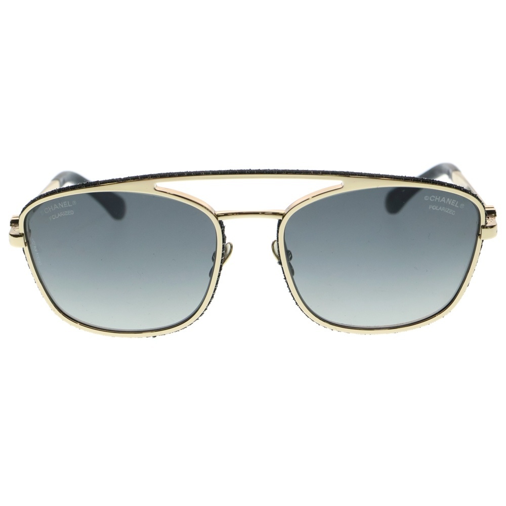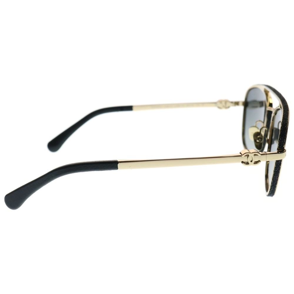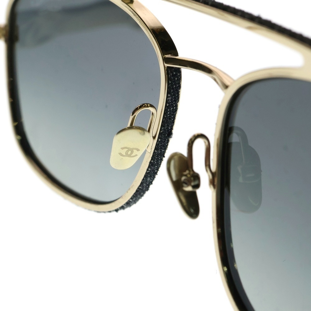 CHANEL シャネル パイロット シェイプ レザー デニムフレーム アイウェア 眼鏡 4290-Q ゴールド