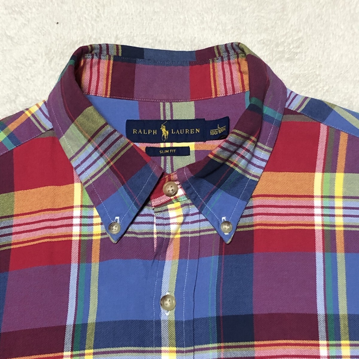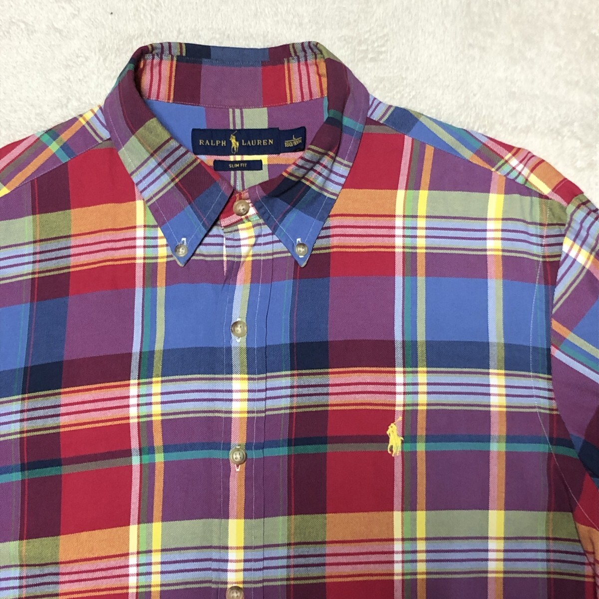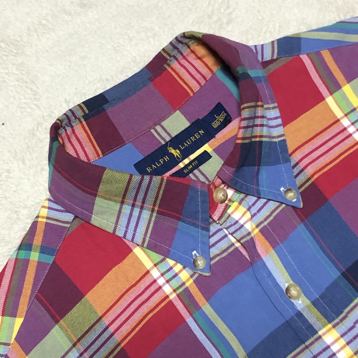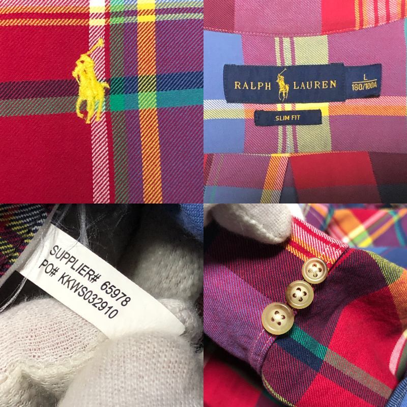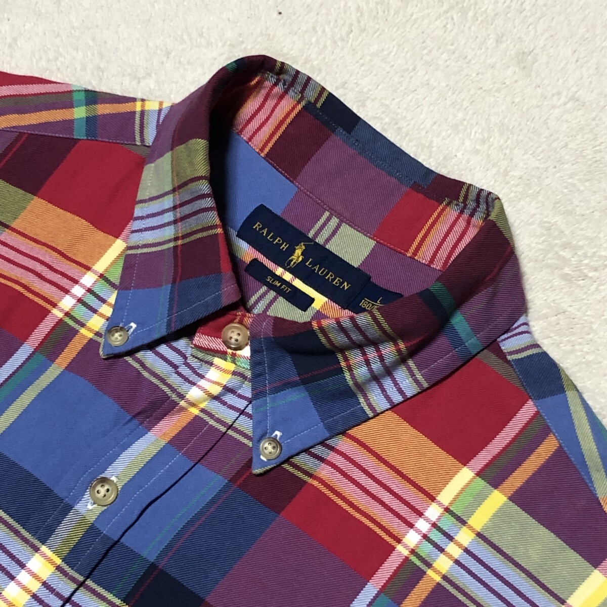 RALPH LAUREN ラルフローレン 長袖シャツ ボタンダウン ポニー刺 マルチカラー チェック柄 Lサイズ 人気の大きいサイズ