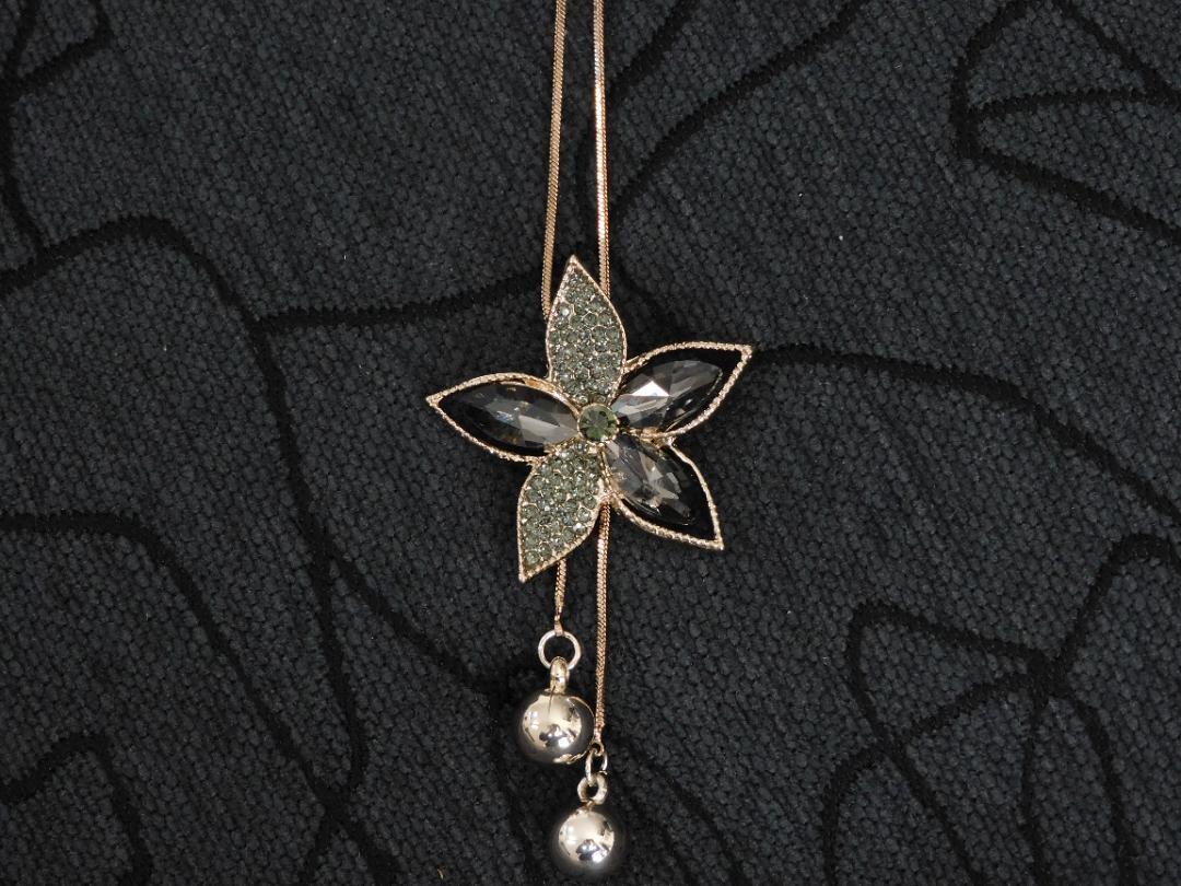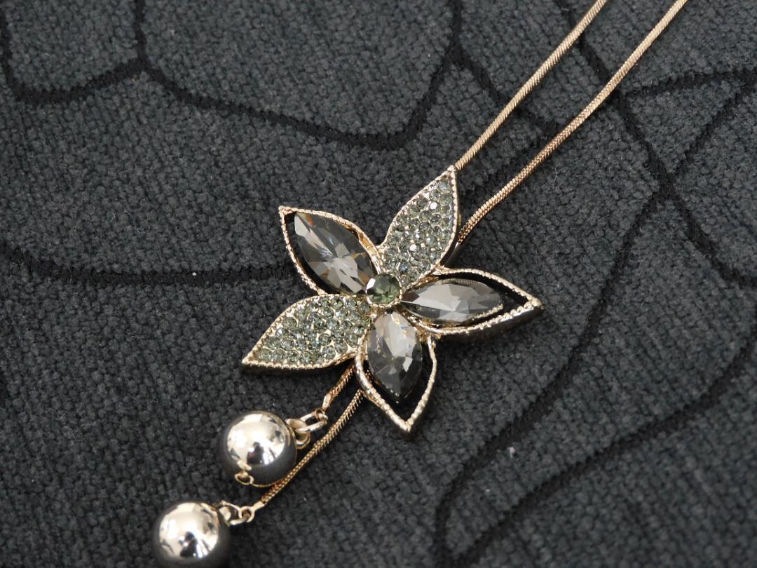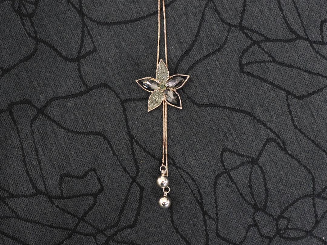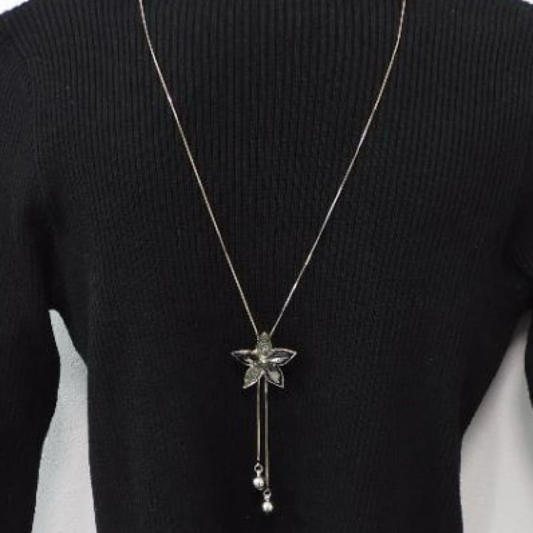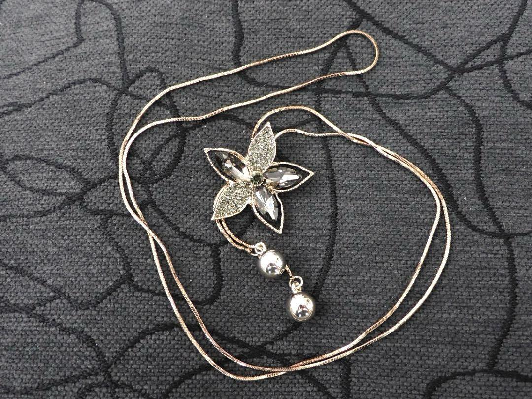 (2601)モダン グレーフラワー お花 ロングネックレス 自由に長さ調整