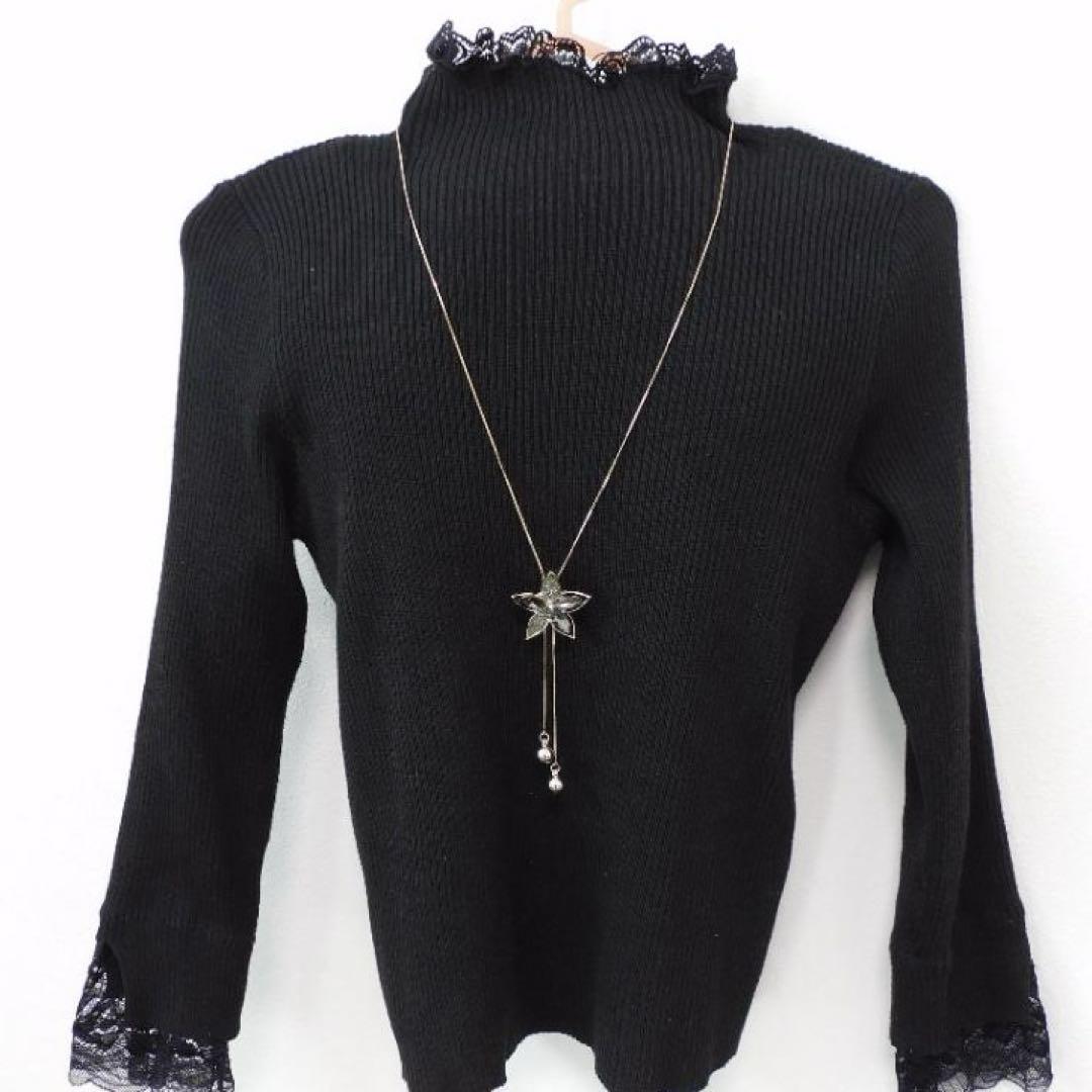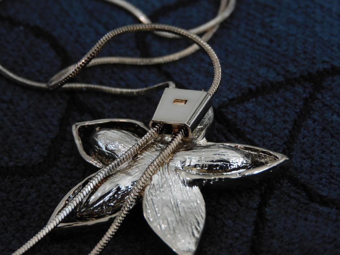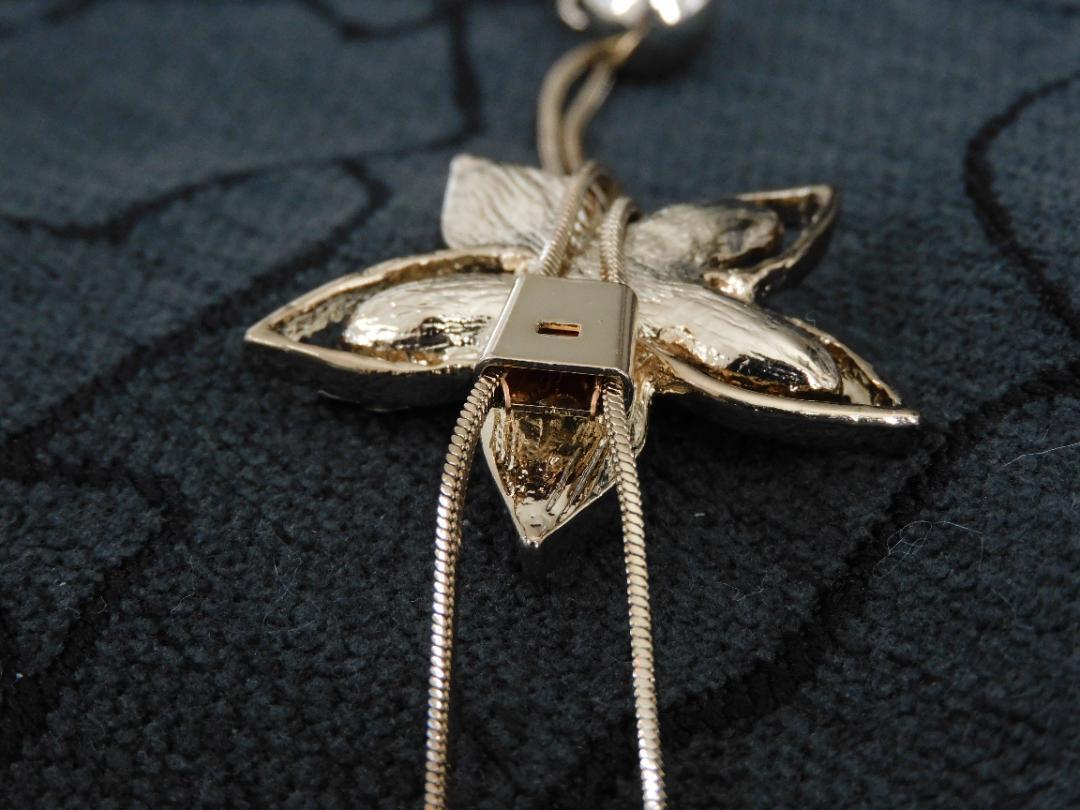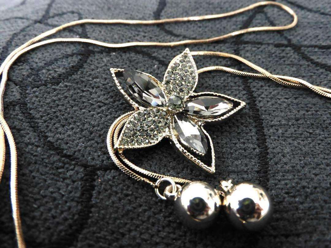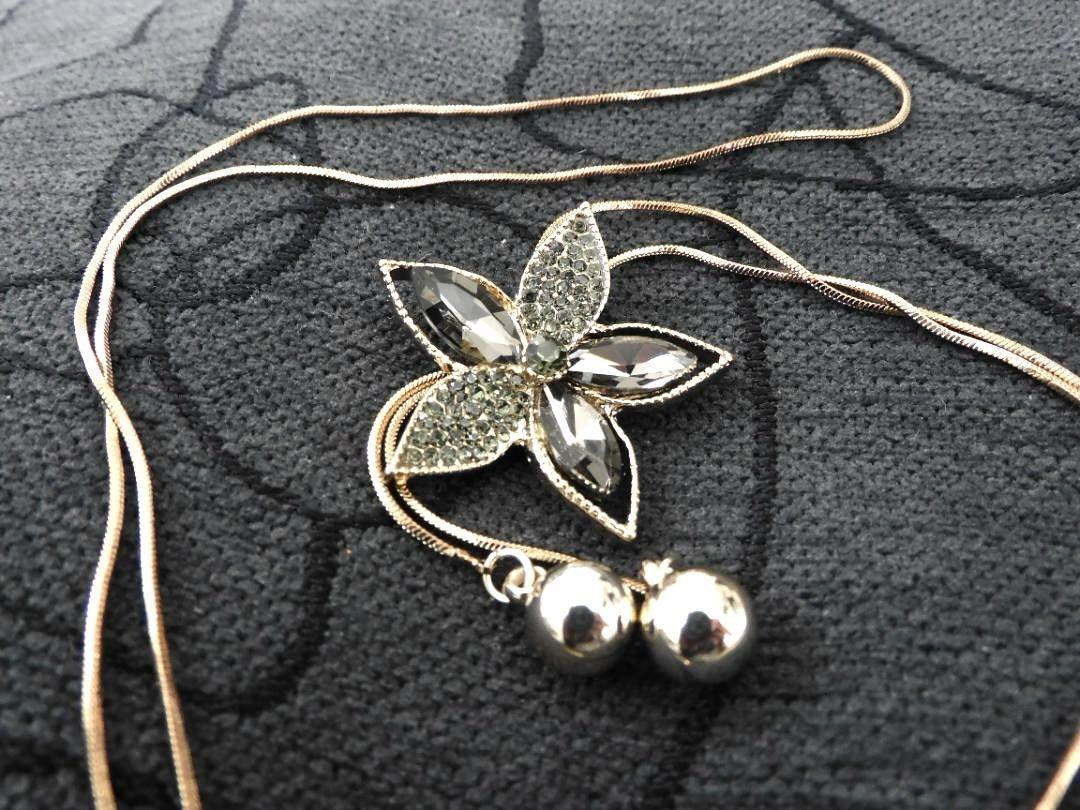(2601)モダン グレーフラワー お花 ロングネックレス 自由に長さ調整