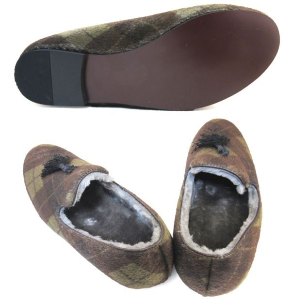 L759新品Conlar Eveハラコ/フリンジタッセルボアスリッポンM⇒26㌢チェック柄KAHKI♂