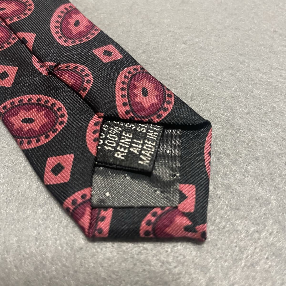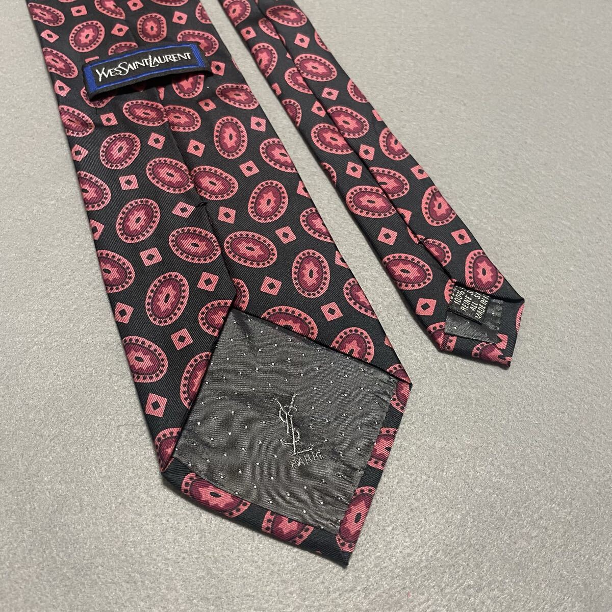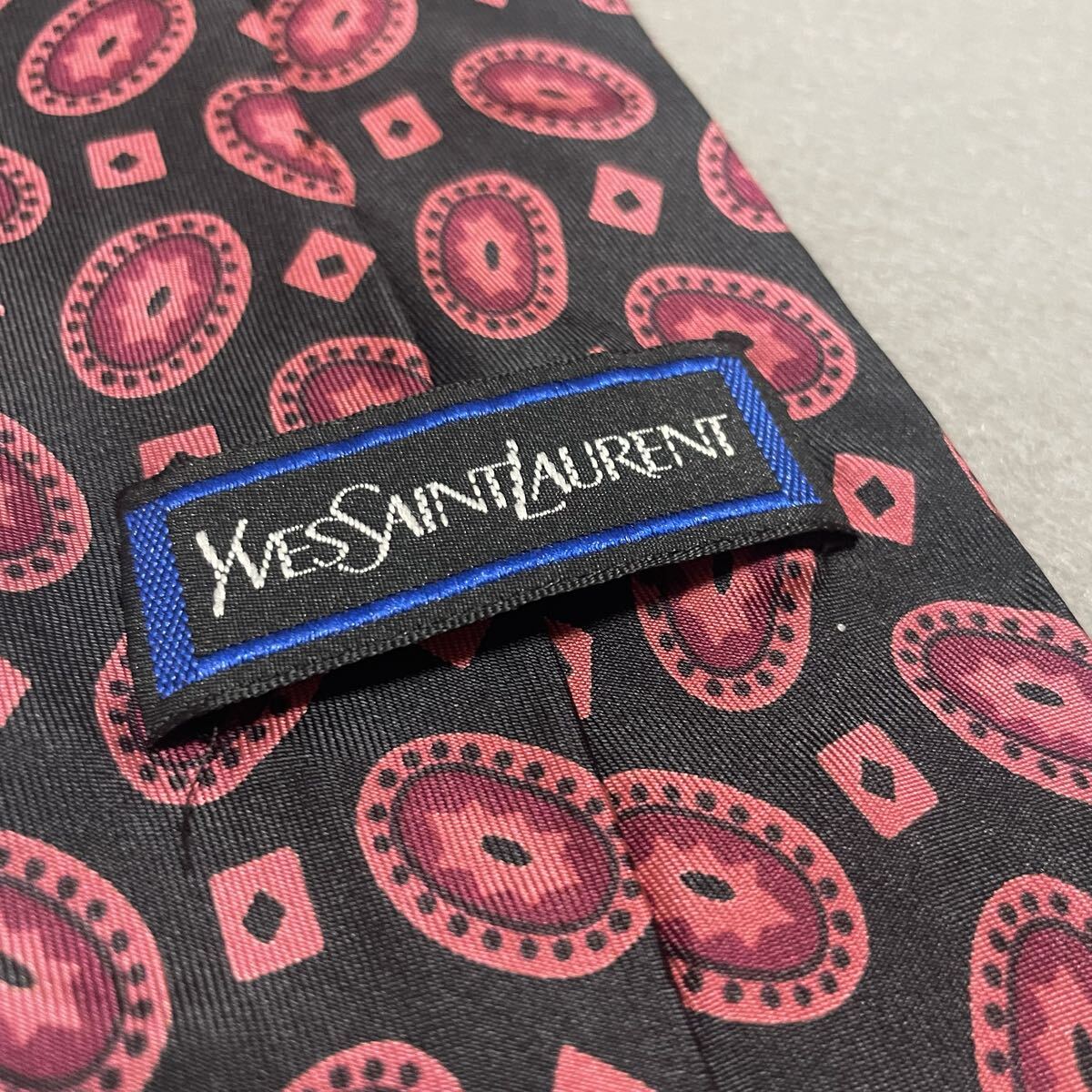 未使用級 訳あり Yves Saint Laurent イヴ・サンローラン シルク100 ネクタイ イタリア製 総柄 ブラック系 ビジネス メンズ 通勤