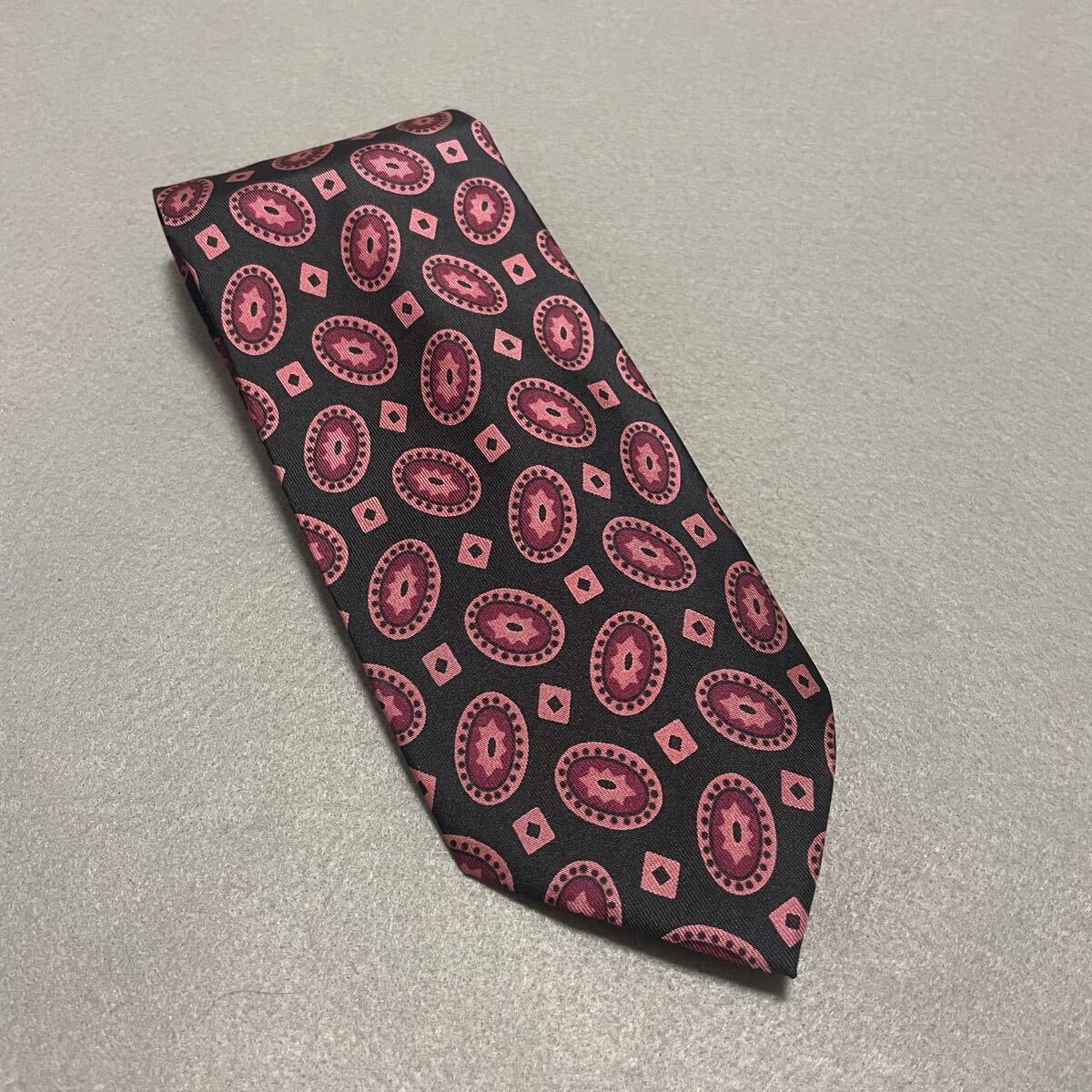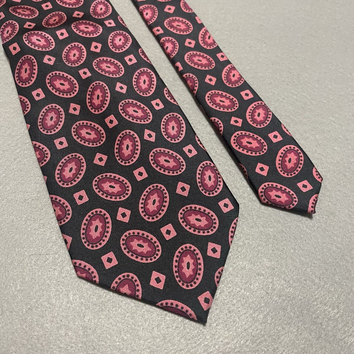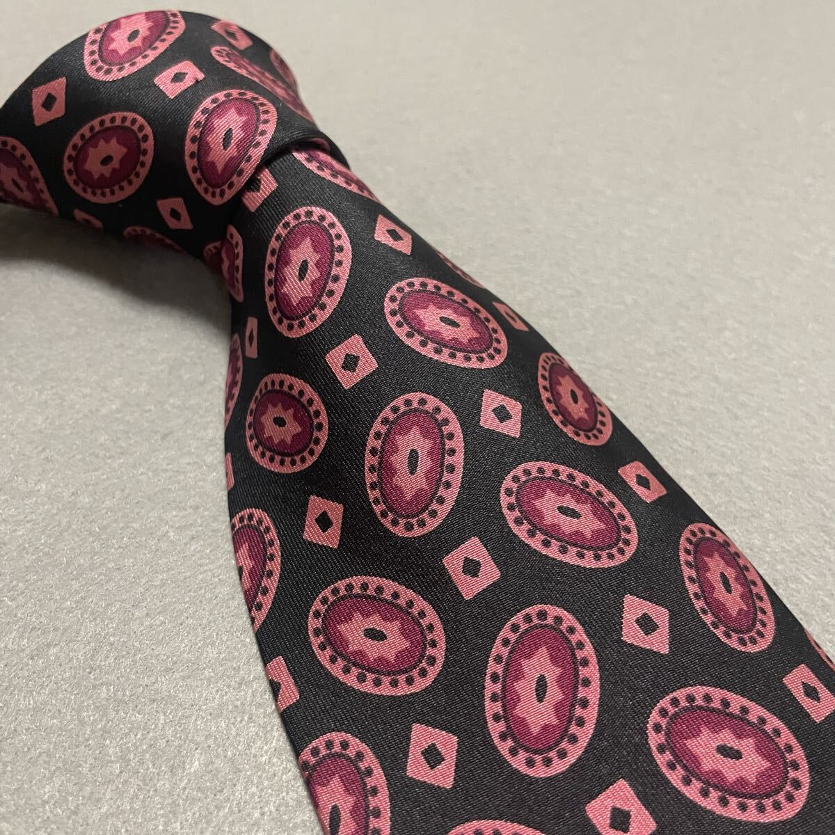 未使用級 訳あり Yves Saint Laurent イヴ・サンローラン シルク100 ネクタイ イタリア製 総柄 ブラック系 ビジネス メンズ 通勤