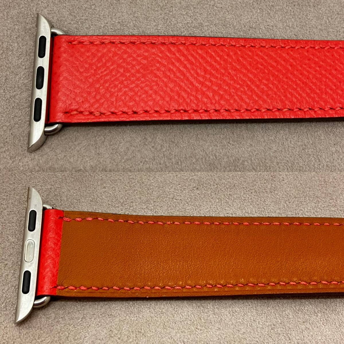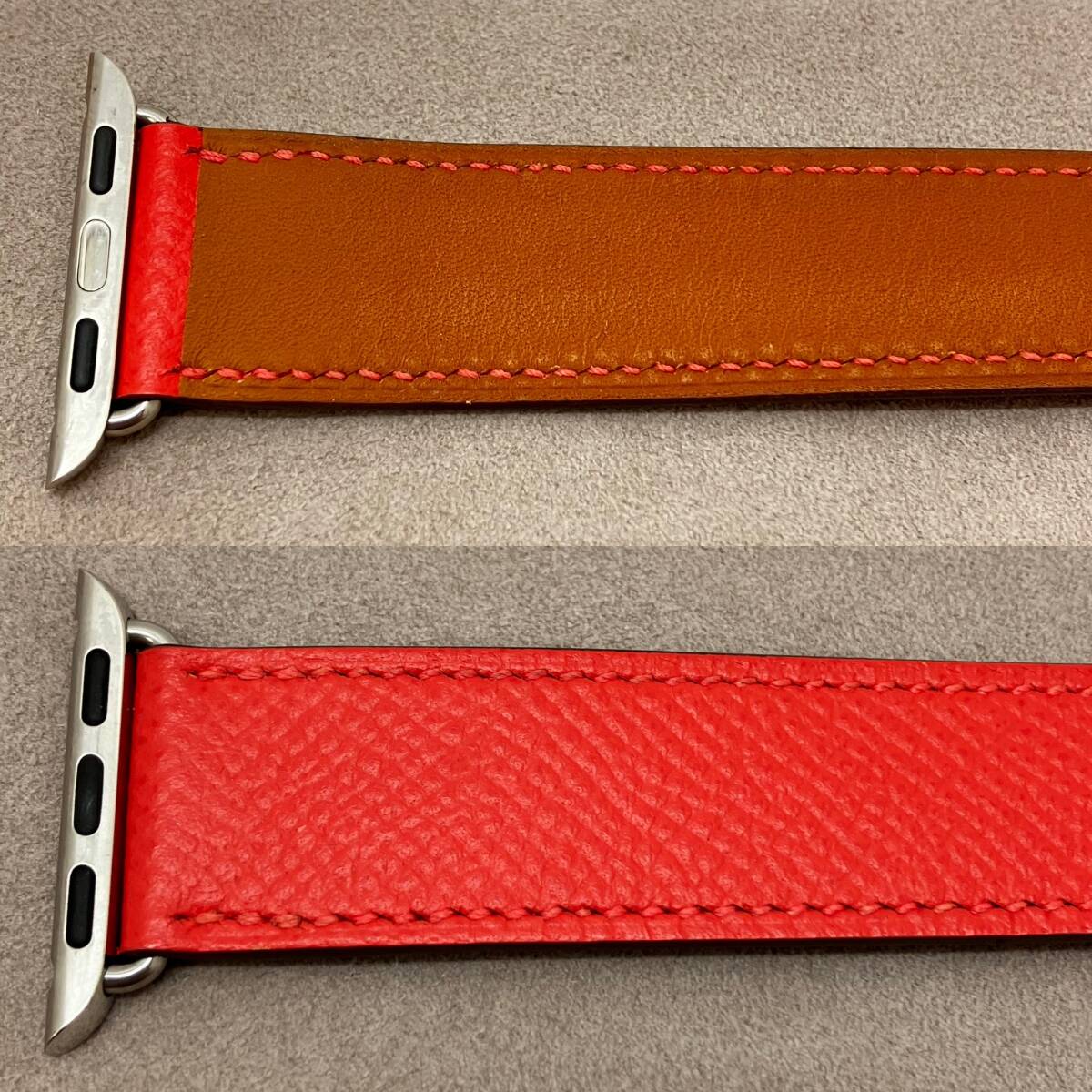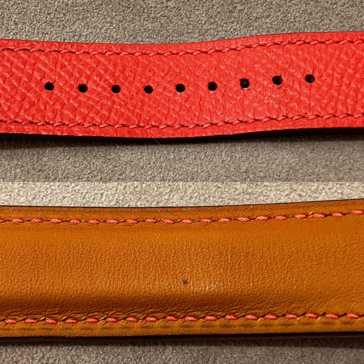 ■商品名■ 【USED品】*極美品/フィルム付き* HERMES エルメス apple watch Hermes 38MM Rose Jaipur Double Tour アップルウォッチ エルメス ローズジャイプール ダブルツアーレザーバンド38mm レザーストラップ ヴォー・エプソン ローズ・ジャイプール 説明書 冊子 保存袋 箱付き ■商品内容「エルメス アップルウォッチ レザーバンド」の主な仕様■ <ブランド名> ・HERMES エルメス <ライン名> ・アップルウォッチ エルメス <モデル名> ・38mm ダブルツアーレザーバンド <形状> ・アップルウォッチ 38mm専用レザーベルト <型番> ・MNHJ2FE/A <カラー> ・ローズジャイプール <素材> ・ヴォーエプソン ■ サイズ ■※長さは目安となります※ <12時側(親側)> ・ラグ幅 :約32mm ・全長 :約88mm ・革部横幅:約20mm ・革部厚み:約2.2cm <6時側(剣先側)> ・ラグ幅 :約32mm ・全長 :約27.5mm ・革部横幅:約20mm ・革部厚み:約4.0cm ■ 仕様 ■ <外側> ・スライド脱着式 <カラー> ・ローズジャイプール <素材> ・ヴォー・エプソン <金具> ・シルバー色 ■点数■ ・1点 ■付属品■ ※画像の物がすべてです。 ※ベルトのみの販売のためアップルウォッチ 本体は付属しておりません。 ■管理NO■ ・Y0621051 ※当方は、専門知識がない為、よく写真を ご覧になり、確認いただきご入札ください。 (専門的な質問はお答えできかねます。) ※ご質問に対し、文字数制限も含め、一回答 (出品者側からの追加返信ができないシステ ム)といなっております。 ※複数のご質問などの場合は、文字数制限の かねあいから一度にすべて返信できないこと もあるため、ご質問は数回に分けてご連絡 いただき、出品者から返信がない場合などは 大変お手数ですが、再度ご連絡いただきます と幸いです。 |