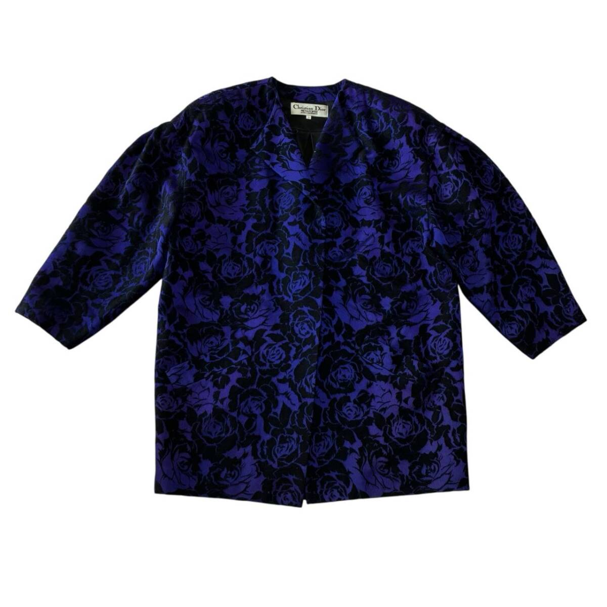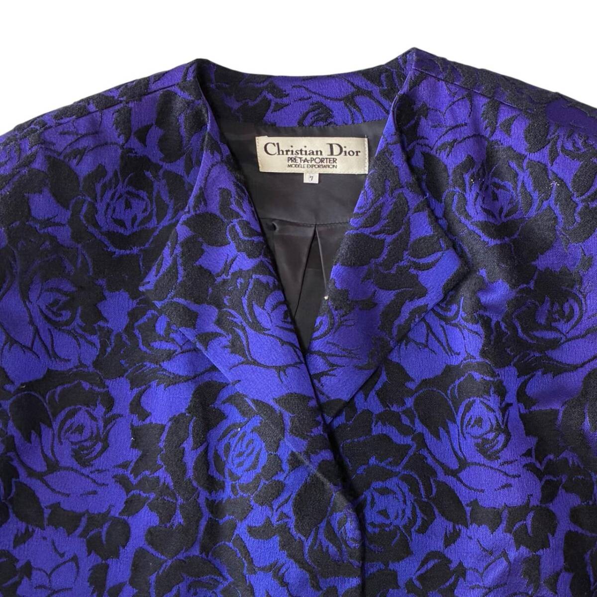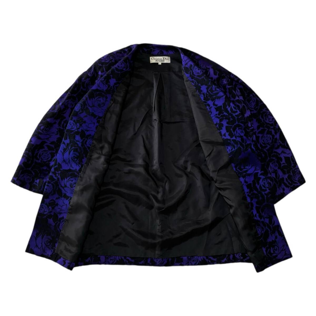 Dior ディオール ハーフコート オープンカラー フラワーエンボウス加工 パープル系 ウール ヴィンテージ レディース アウター サイズ7 |