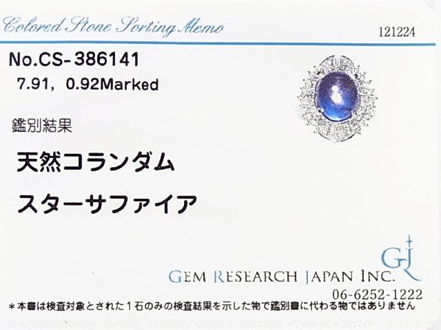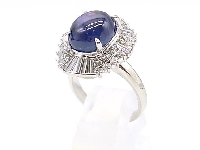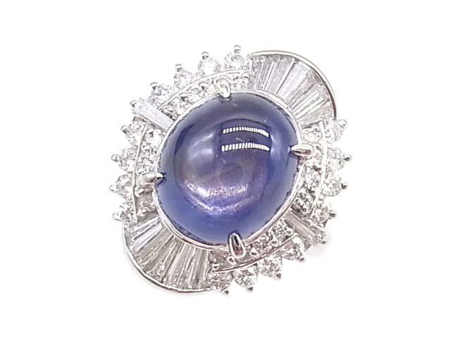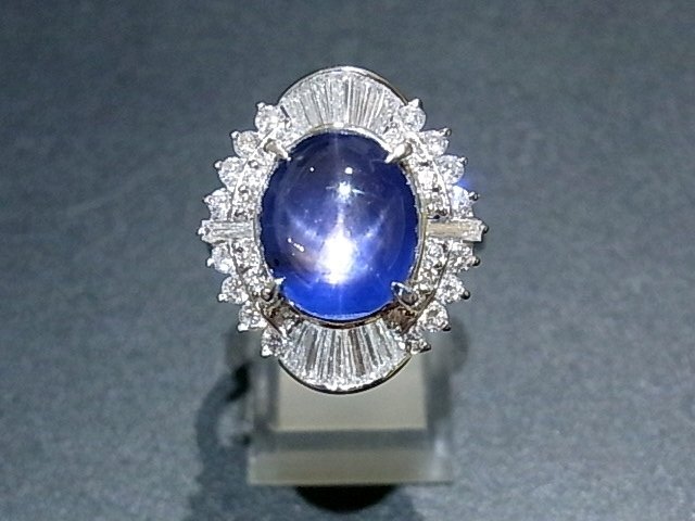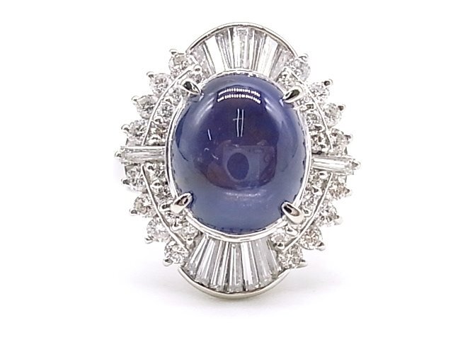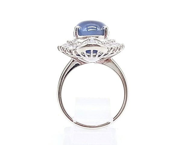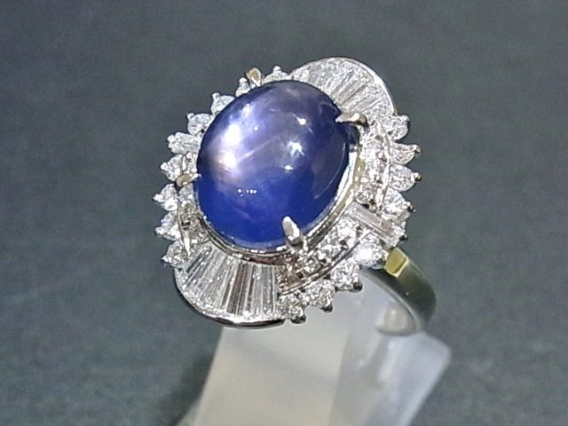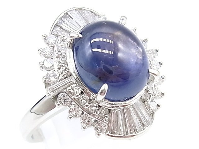 g20469 Pt900 スターサファイア7.91ct D0.92ct リング USED 美品 9.6g #7 ソーティング付