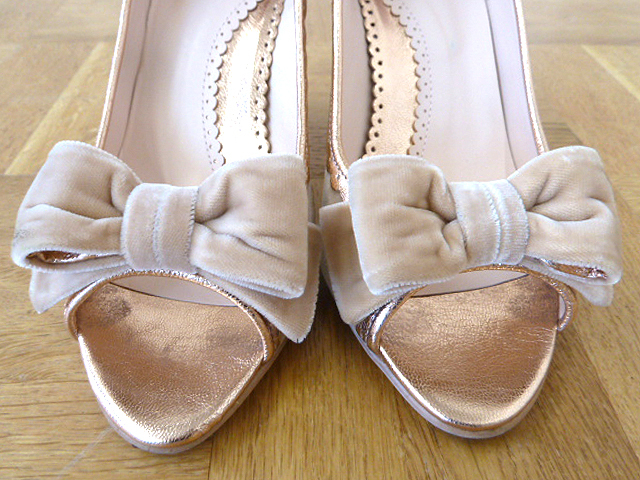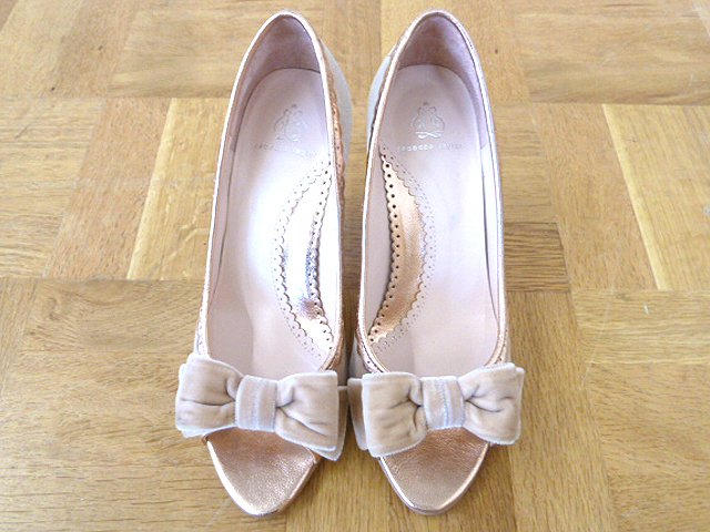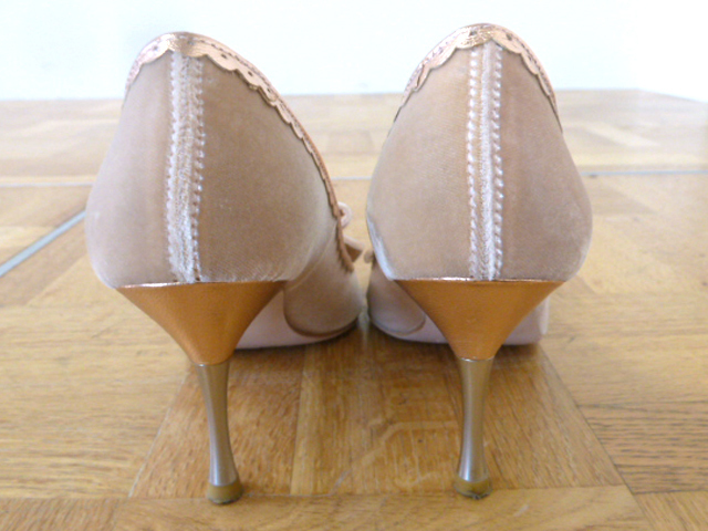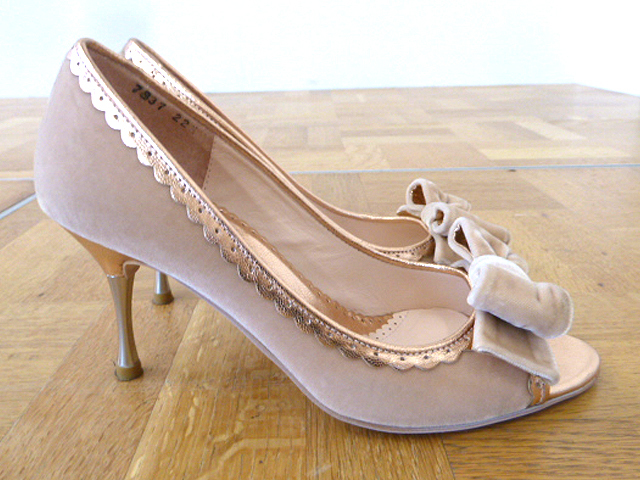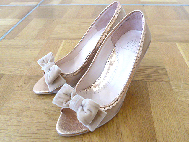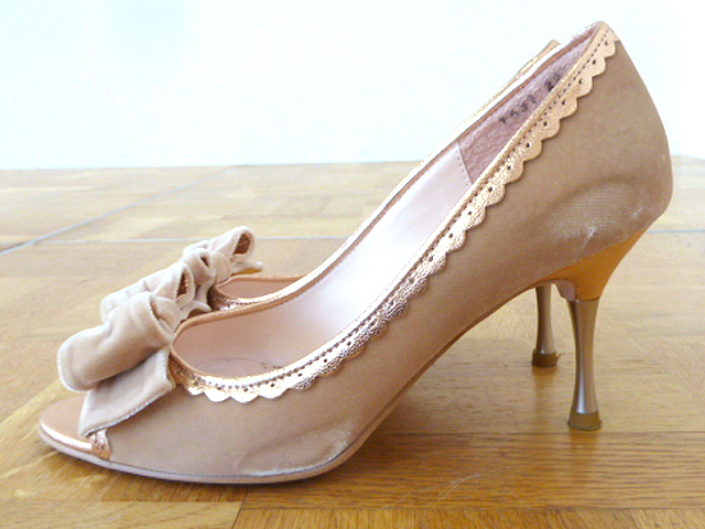 【中古】レベッカテイラー パンプス オープントゥ 22.0cm レディース ピンク ヒール リボン ベロア パーティー 靴