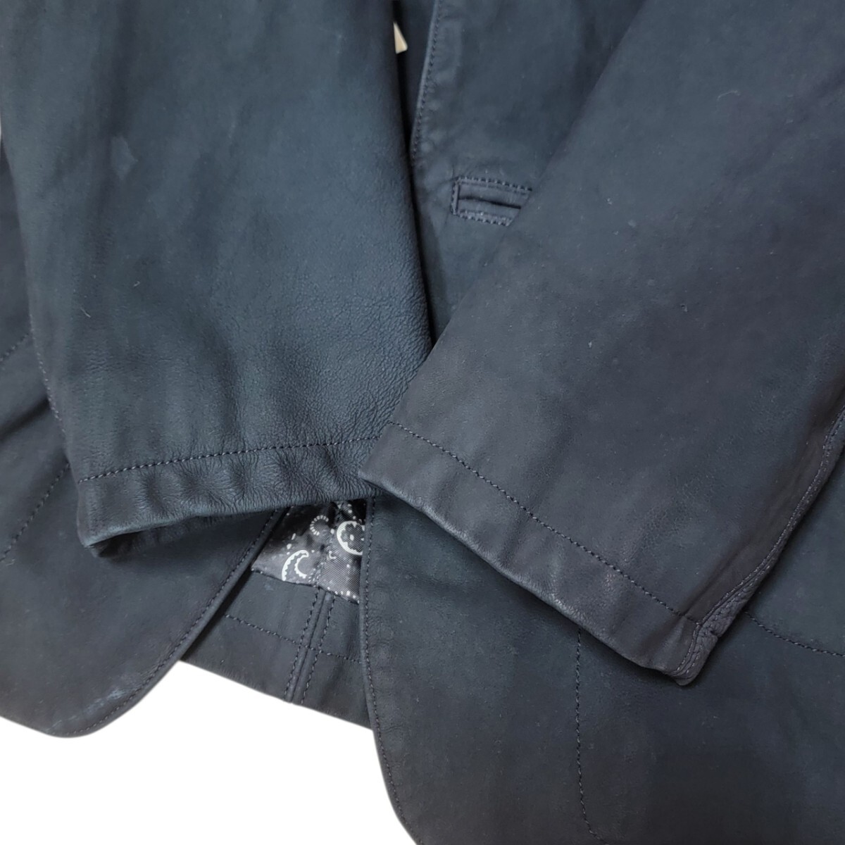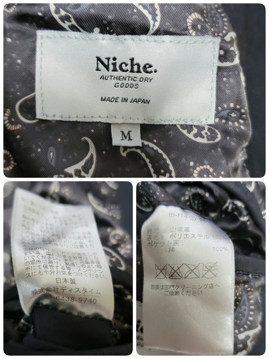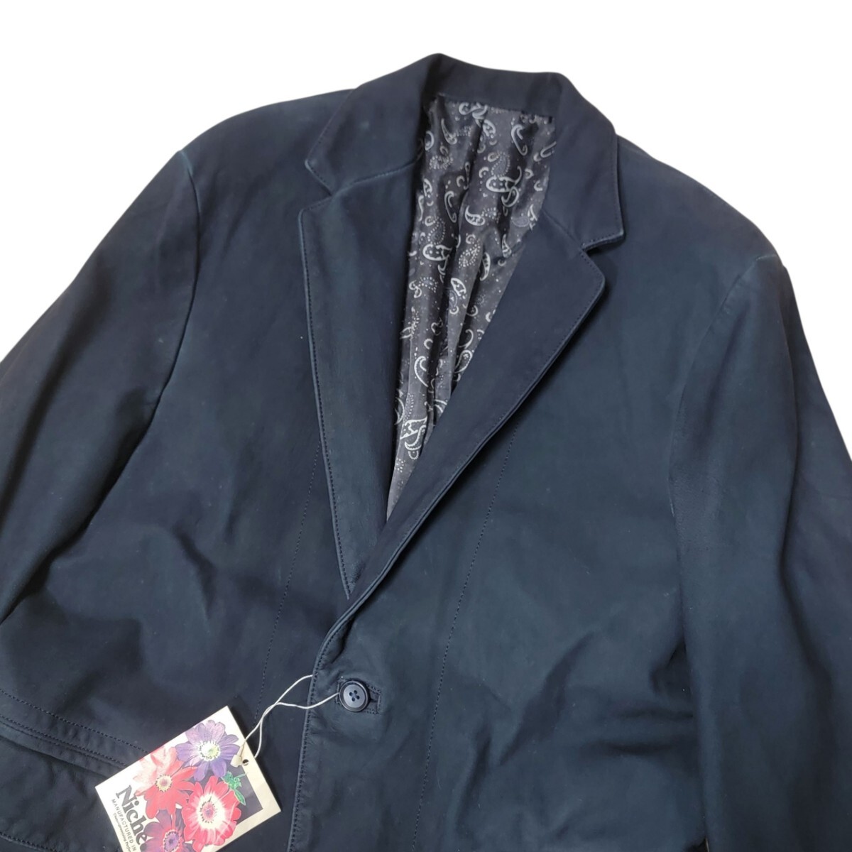 【抜群の製品染め加工】日本製 ニッチ niche. 山羊革 レザージャケット M テーラードジャケット ゴートレザー 紺 裏地ペイズリー柄