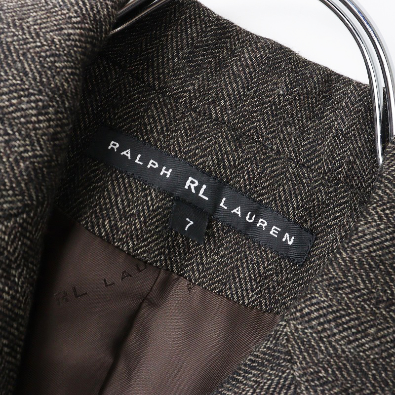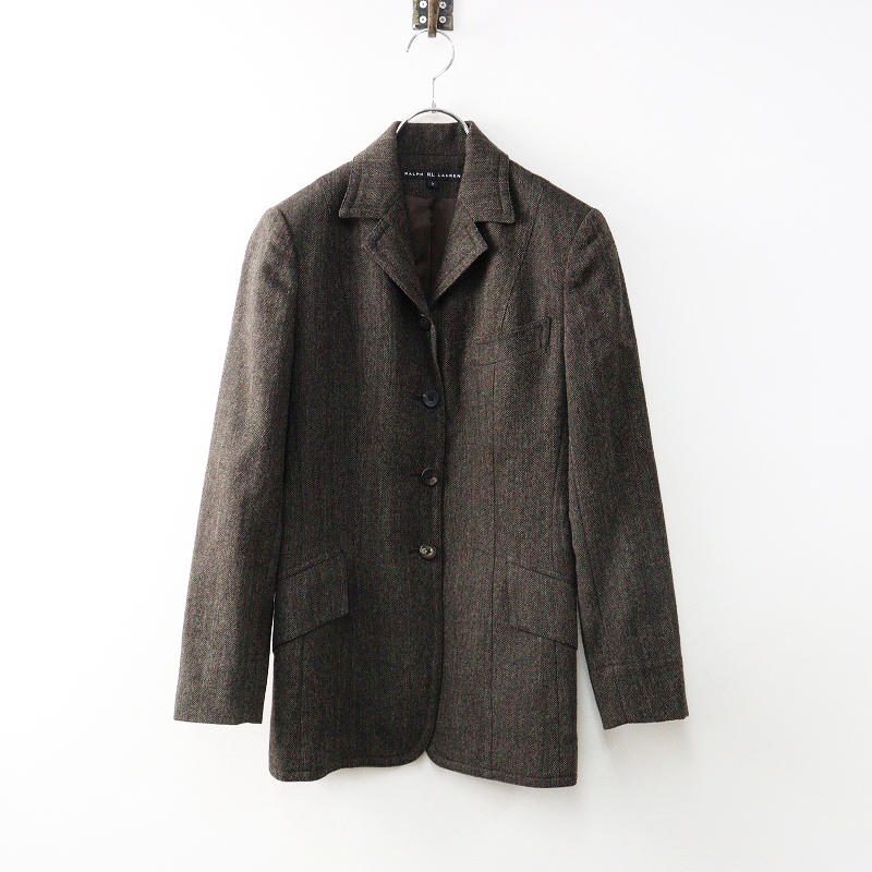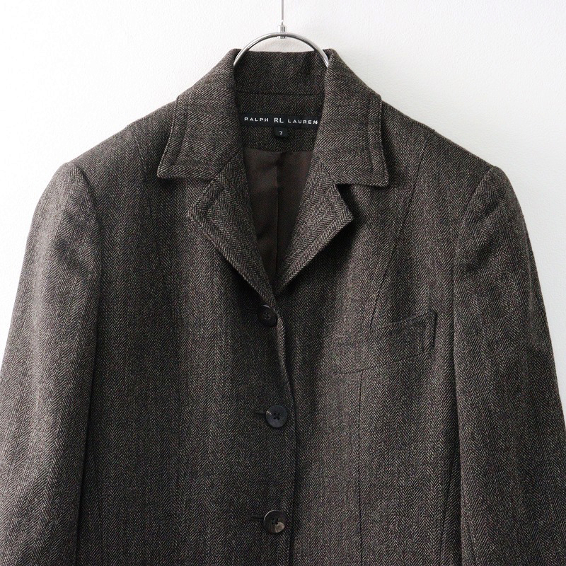 90s 00s インパクト21期 ウール ヘリンボーン テーラード ジャケット 7|ブラウン 羽織り アウター 前開き 【2400014616477】