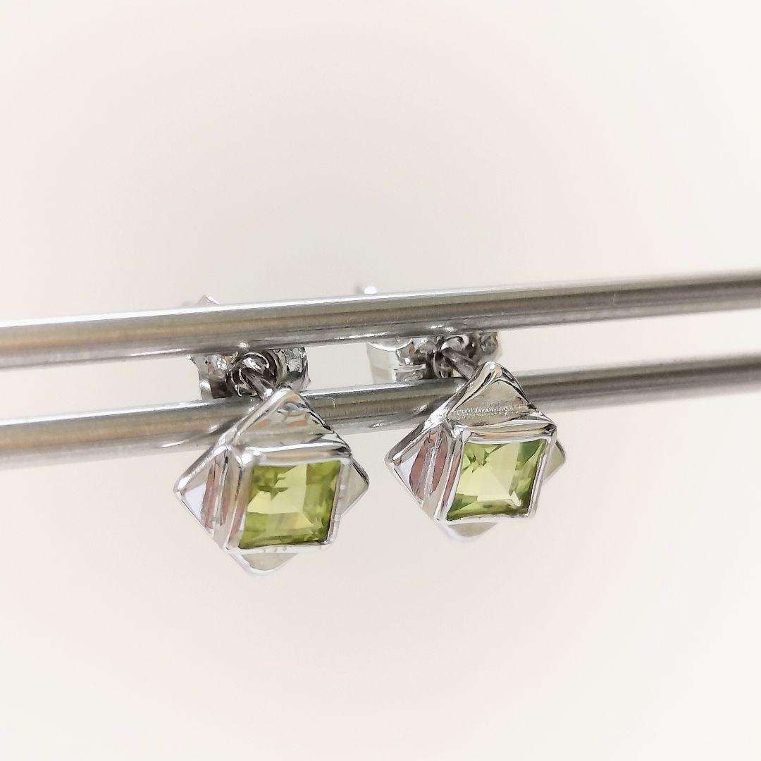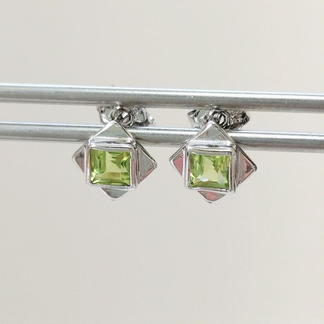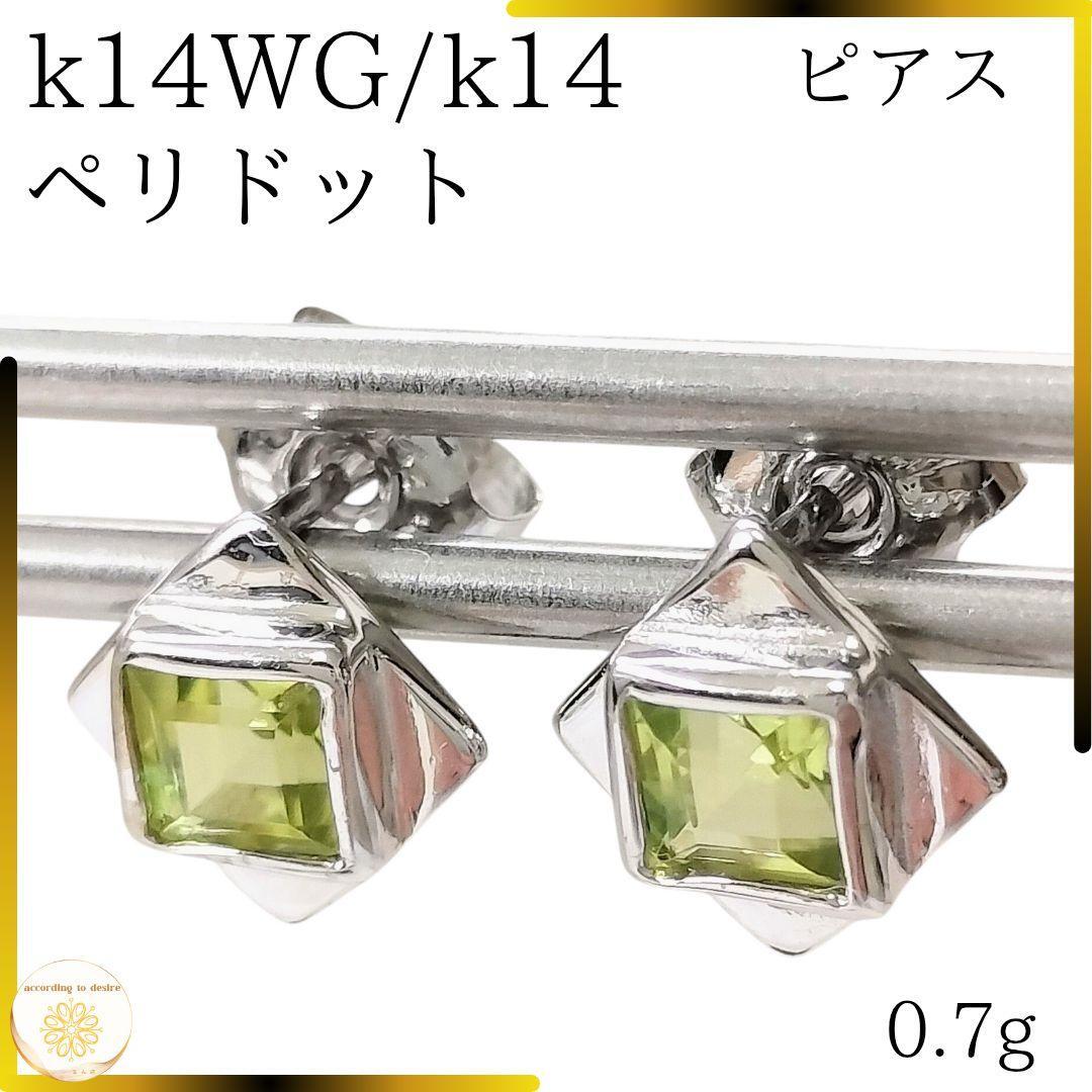 爽やかな黄緑色が魅力のペリドットを使用したK14WGピアス。