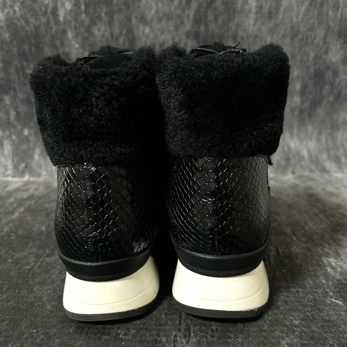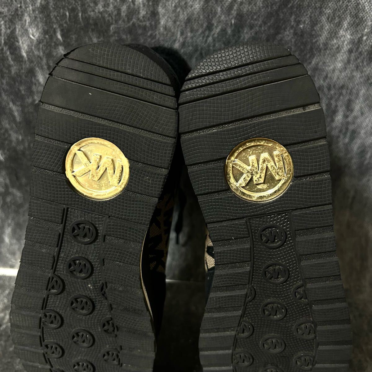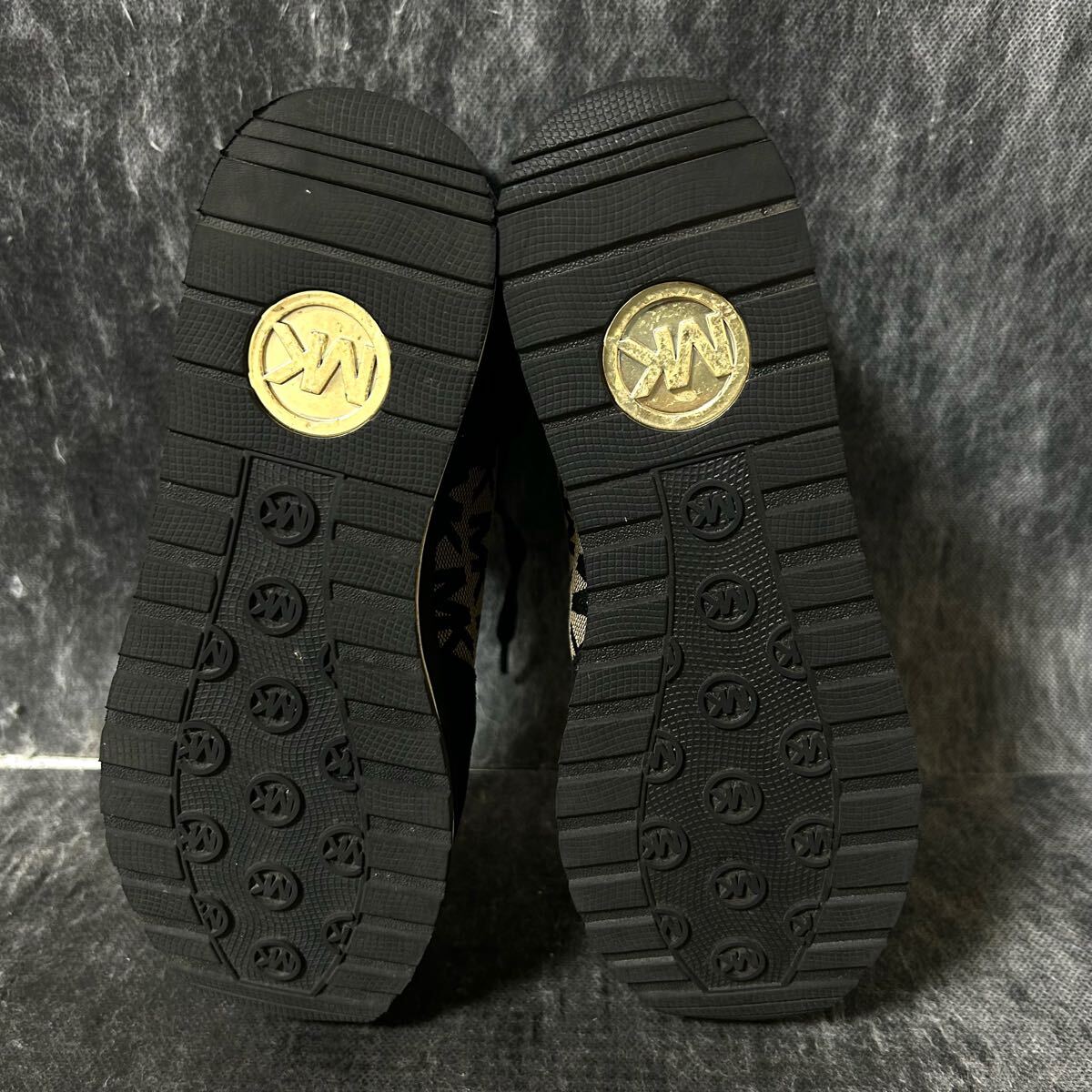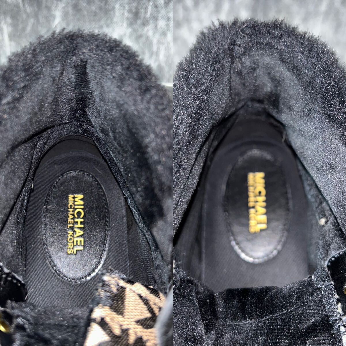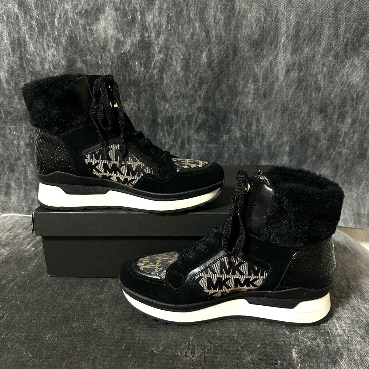 【美品】MICHAEL KORS マイケルコース スニーカー キャンバス×スエード 総柄 ファー 7 24cm相当 ブラック *EO