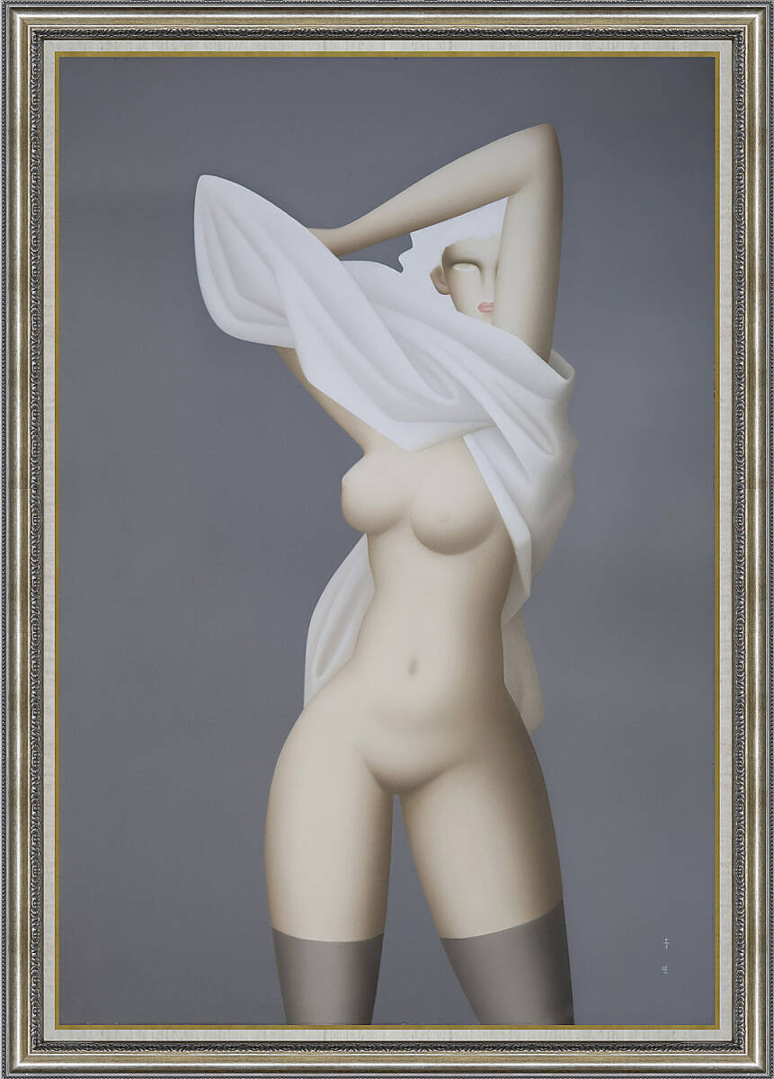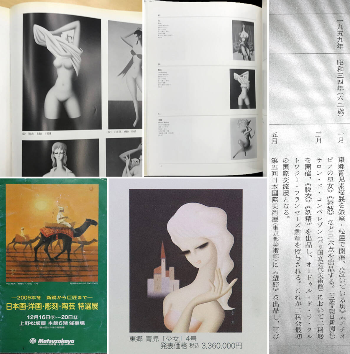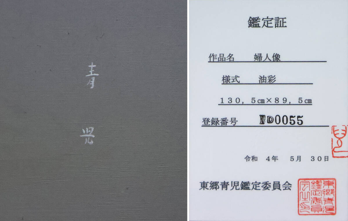 画家:東郷青児 タイトル:婦人像 技法:キャンバスに油彩 画面サイズ:130.5×89.5㎝ 額サイズ:147×106㎝ サイン:右下にサイン 東郷青児鑑定委員会鑑定証付 コンディション:この時代の作品にはほぼ全てヒビ等あります。 東郷 青児 (とうごう せいじ) 本名:鉄春 1897年 鹿児島県出身 1914年 青山学院中等部卒業 1915年 山田耕筰の東京フィルハーモニー赤坂研究所の一室で制作 初個展開催(日比谷美術館) 有島生馬に師事 1916年 二科展初出品、二科賞受賞 1921年 フランス留学(~28年)、リヨン美術学校に学ぶ 1928年 二科展に滞欧作23点特別展示、昭和洋画奨励賞受賞 1930年 ジャン・コクトー著「怖るべき子供たち」翻訳(白水社) 1931年 二科会会員に推挙 1938年 二科会に「九室会」が結成され、藤田嗣治と共に顧問に就任 1942年 新文展審査員に任命 1945年 終戦後、二科会再建に挺身 1957年 日本国際美術展大衆賞受賞 日本芸術院賞受賞受賞 1960年 日本美術院会員に任命 1961年 二科会会長に就任 1962年 サロン・ドートンヌ名誉会員 1969年 フランス政府から文芸勲章が授与 1974年 アルジェリア取材 1976年 勲二等旭日重光章授章 東郷青児美術館開館(東京・新宿) 1977年 文化功労者に顕彰 1978年 歿(享年80歳) 正四位追贈 所蔵/東京国立近代美術館、北海道立函館美術館、東京都現代美術館、 神奈川県立近代美術館、愛知県美術館、広島県立美術館、宮城県美術館、 鹿児島市立美術館、名古屋市美術館、佐久市立近代美術館、諏訪市美術館、 高松市美術館、福岡市美術館、ふくやま美術館、玉川近代美術館、岩崎美術館、 長島美術館、損保ジャパン東郷青児美術館、他 |