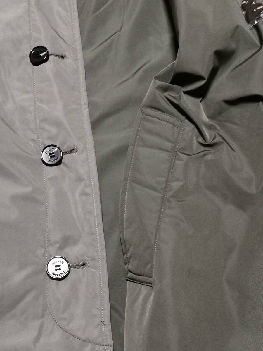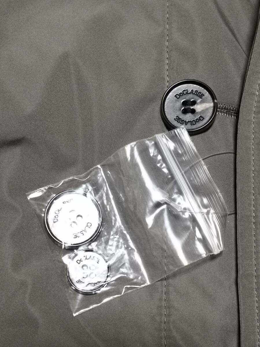 両面の左右にポケットつき。前を閉じますと一番上のボタンのみ面にでます(比翼仕立て)。ボタンに{Do CLASSE}の文字刻印入り。ポケット内はサーモ(フリース)素材。