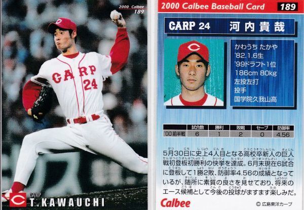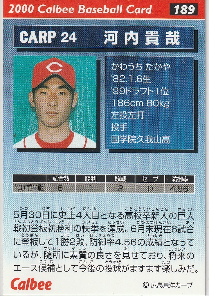 ●2000カルビー 【河内 貴哉】 ルーキーカード No.189:広島 R4  130/260