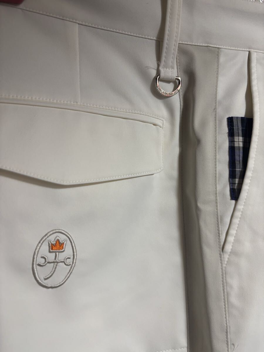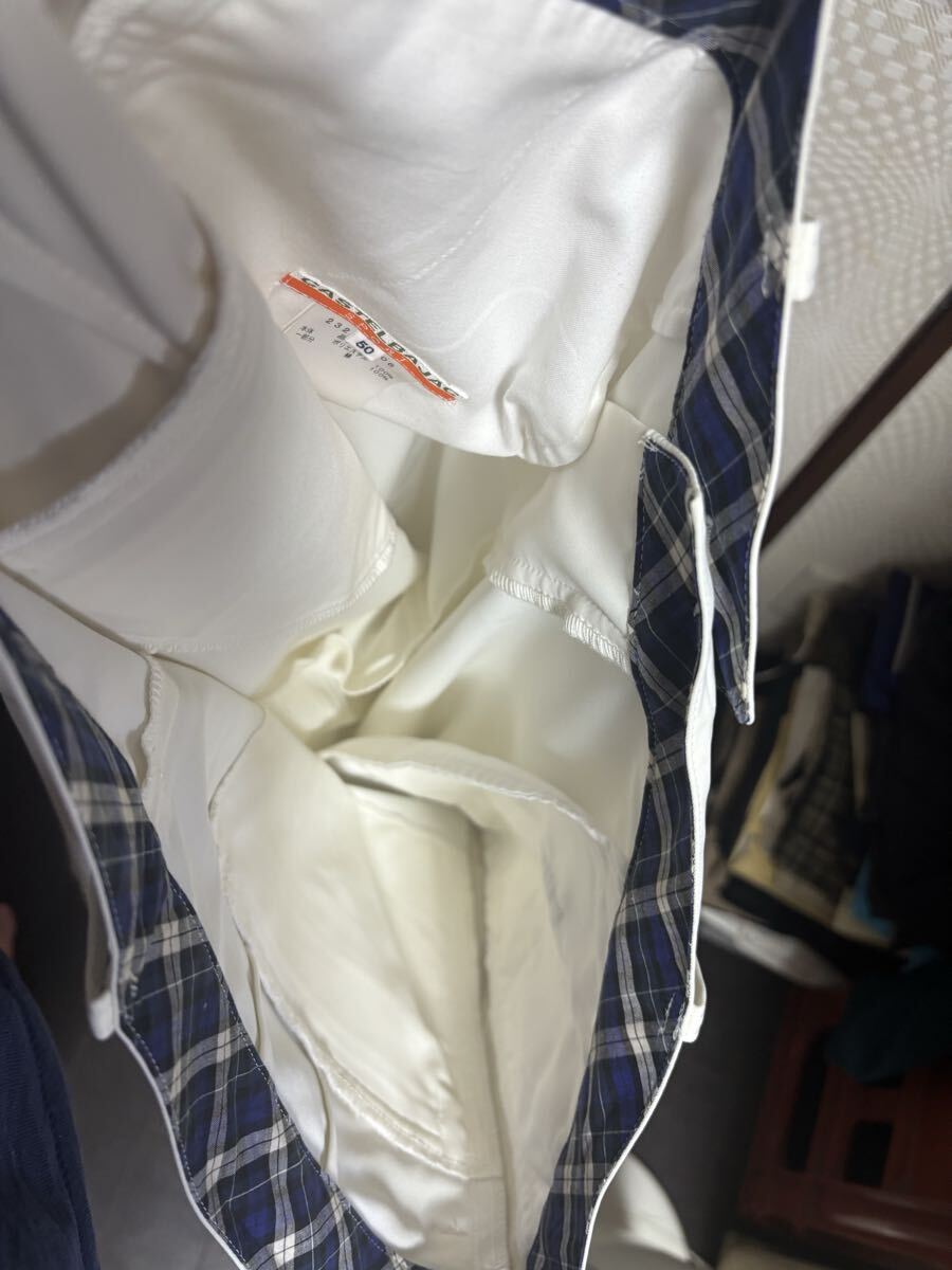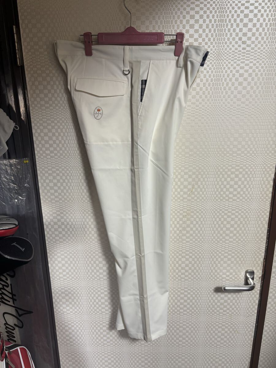 カステルバジャック のポリエステル製ドライパンツです。サイズ50表記で平置きウエスト46股下75裾幅23.5全長100センチ位です。