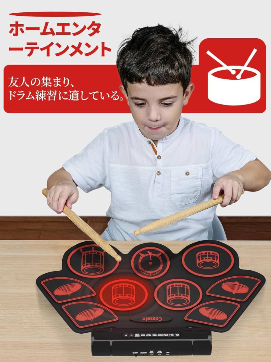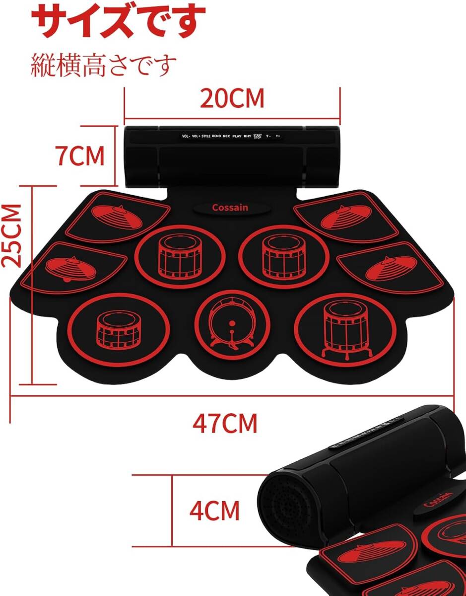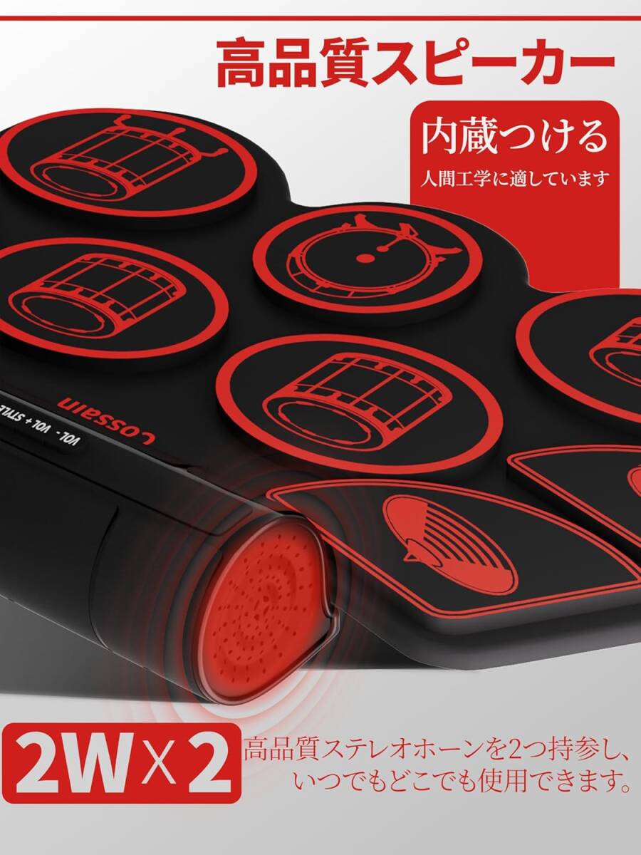 レッド色 電子ドラム 折りたたみ 小さく畳める ロール 子供向け 初心者向け セット 持ち運び 9パッド ハイハット付き